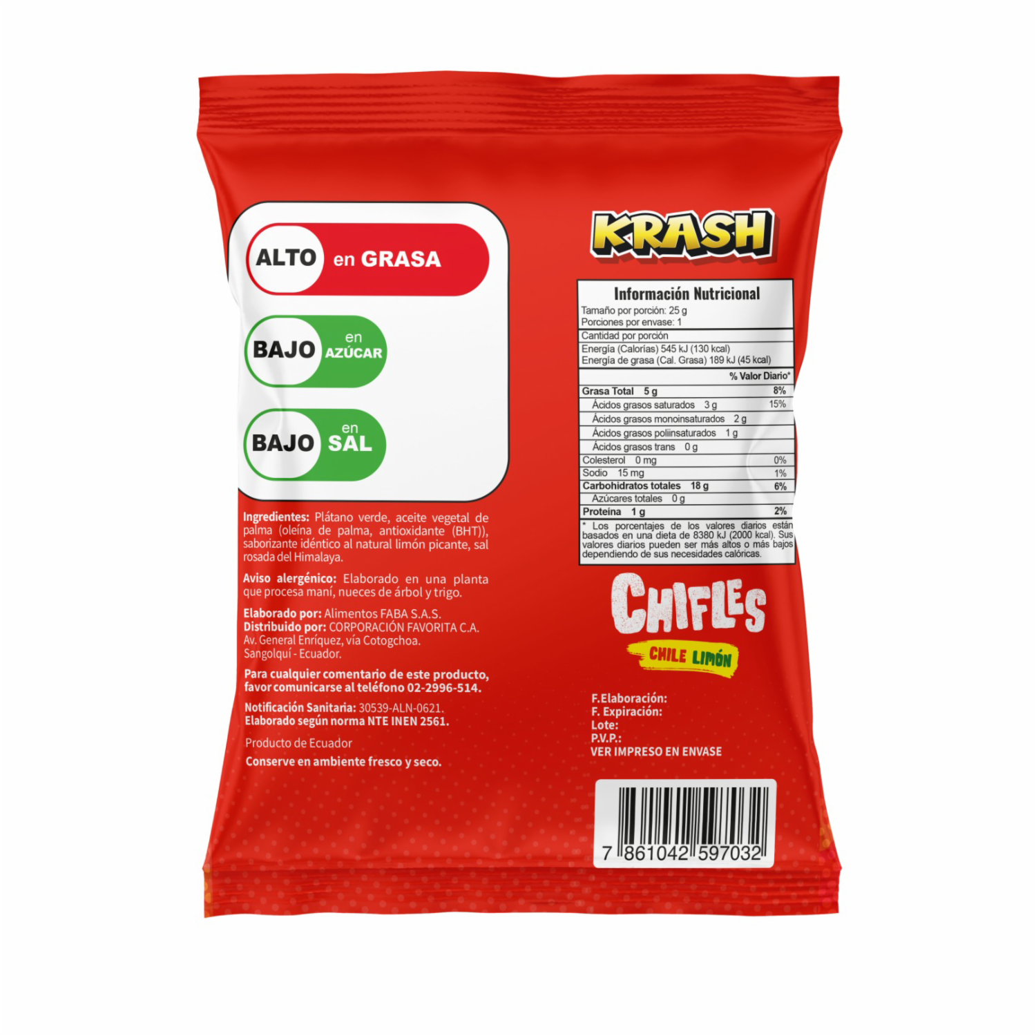 consultando preciosChifles Sabor A Limón Picante Con Pic Ajín KRASH 25 G – KRASH. Disponible en nuestros locales. Precio y stock pueden variar según la tienda.