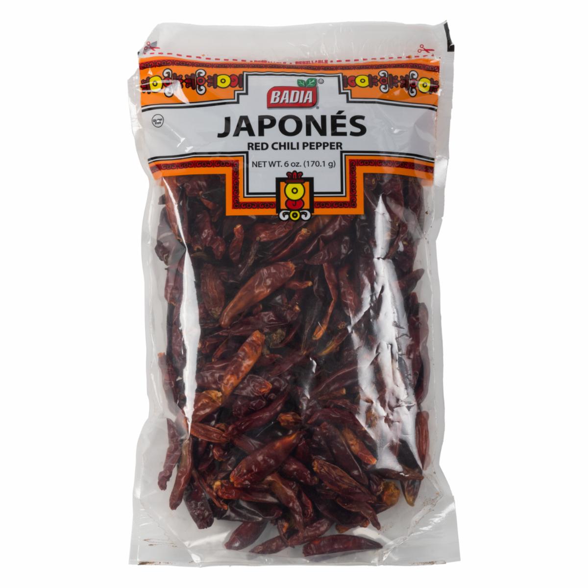 El Chile Japonés de la marca Badia tiene las siguientes propiedades principales: - Sabor picante y ligeramente ahumado. - Textura seca y crujiente. - Aroma intenso y característico. - Se utiliza para condimentar una amplia variedad de platillos, especialmente en la cocina mexicana y asiática. - Contiene antioxidantes que pueden ayudar a prevenir enfermedades cardiovasculares y mejorar la digestión