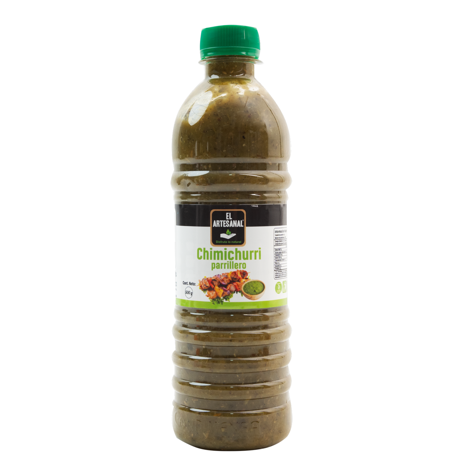 - Chimichurri en pasta El Artesanal 500 gCondimento a base de cebolla, ajo, agua, sal, perejil, vinagre, albahaca, especias, aceite de soya