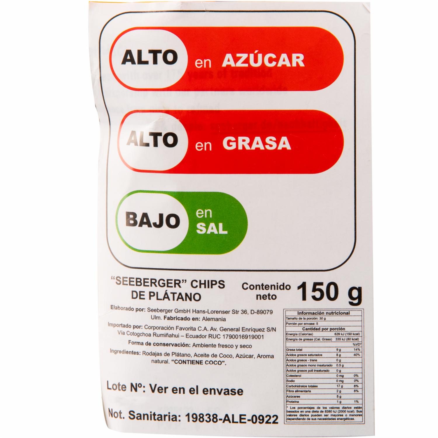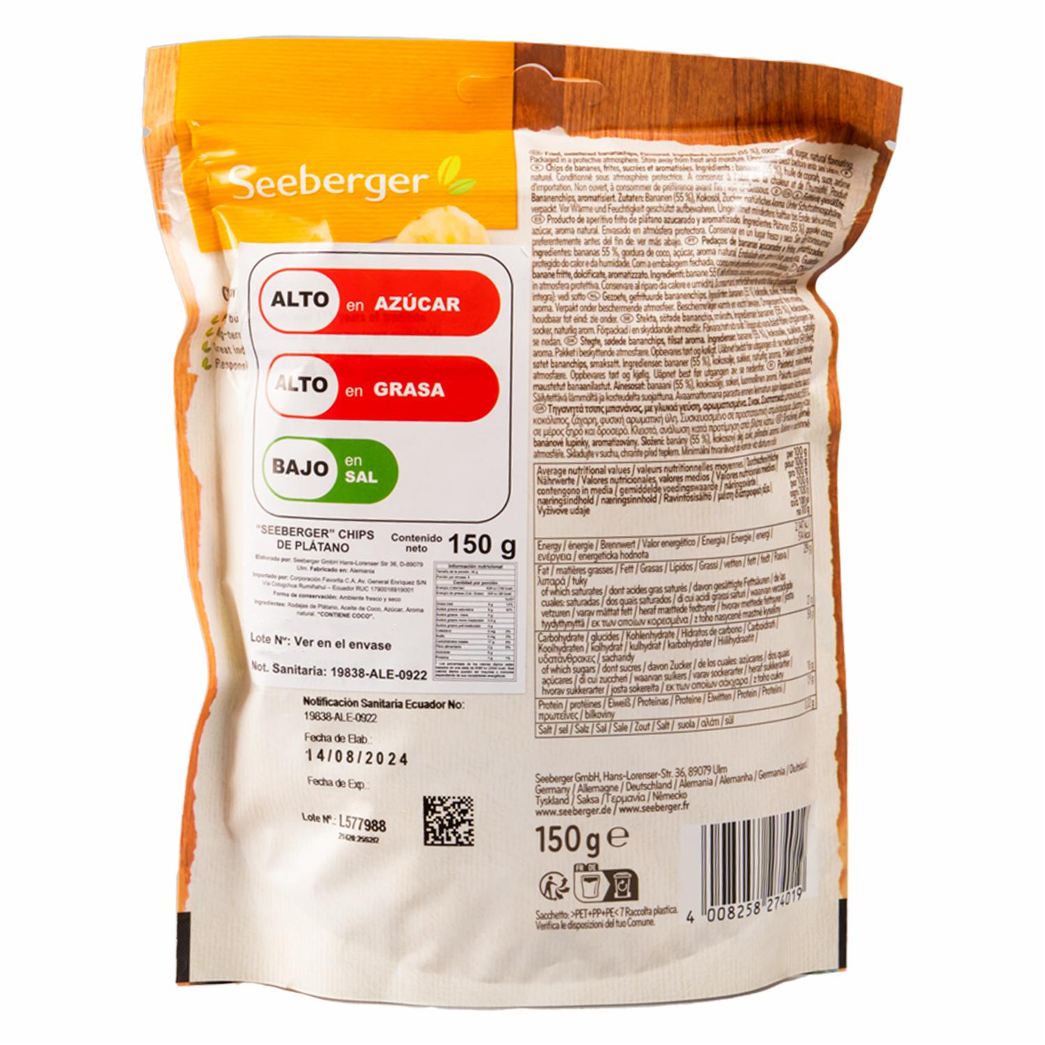consultando preciosChips De Platano SEEBERGER 150G – SEEBERGER. Disponible en nuestros locales. Precio y stock pueden variar según la tienda.