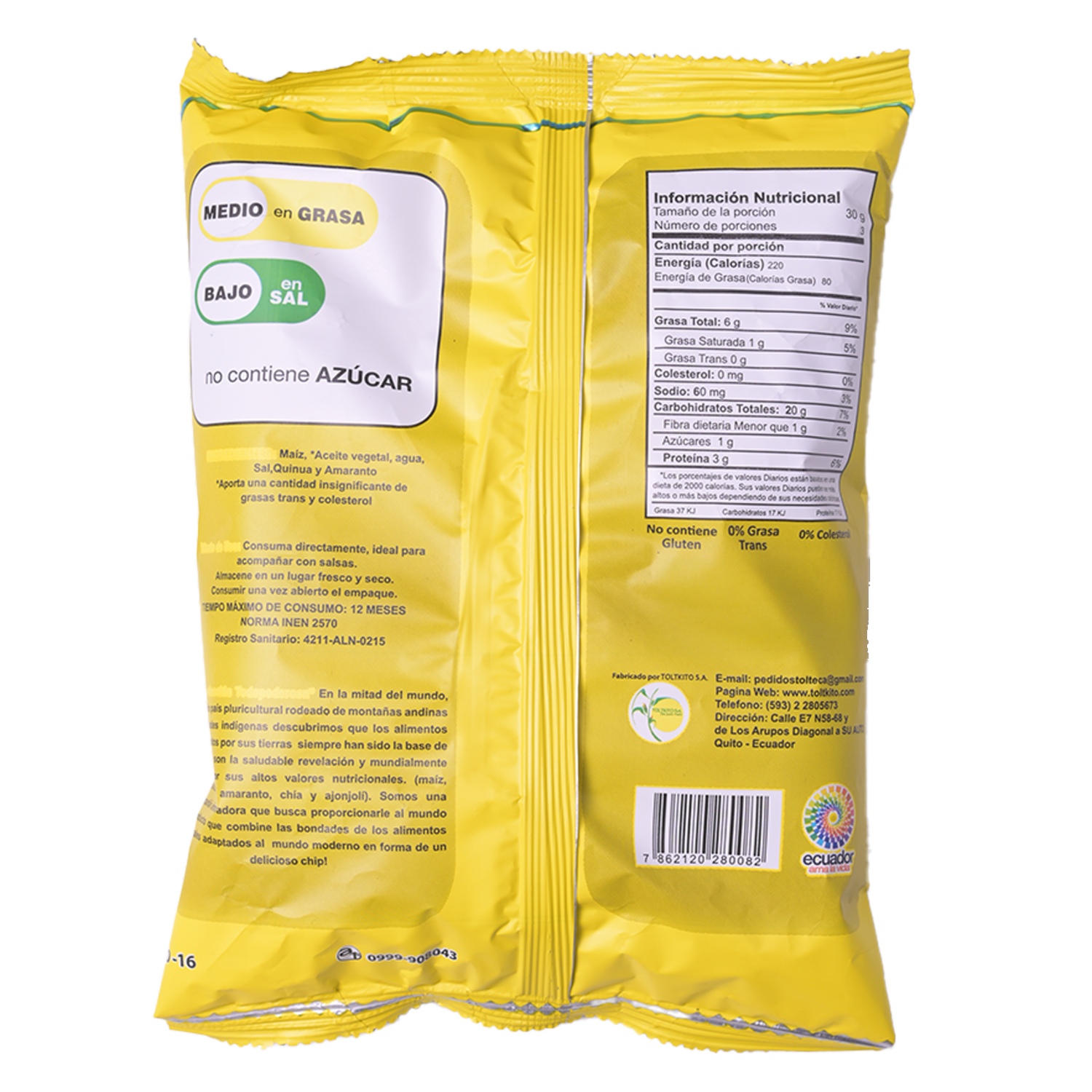 - - Chips crujientes y sabrosos. - Elaborados con ingredientes naturales y saludables como la quinoa y el amaranto. - Libre de gluten y sin conservantes artificiales. - Fuente de proteínas y fibras. - Apto para dietas vegetarianas y veganas. - Ideal para consumir como snack o acompañamiento de comidas