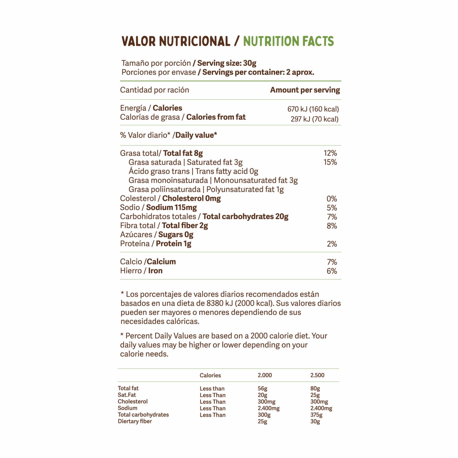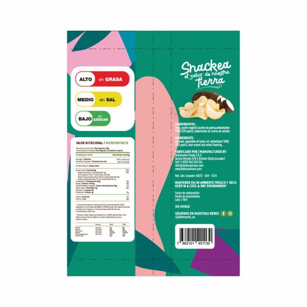 - Snack ideal para cualquier momento del día - Cada empaque contiene 45 g de yuca - NO aptas para veganos, ya que contienen una base láctea en el saborizante - Son libres de gluten - No contienen conservantes ni colorantes artificiales - Son crocantes y se puede acompañar con un dip - Contienen solo 4 ingredientes - Perfectas para lonchera
