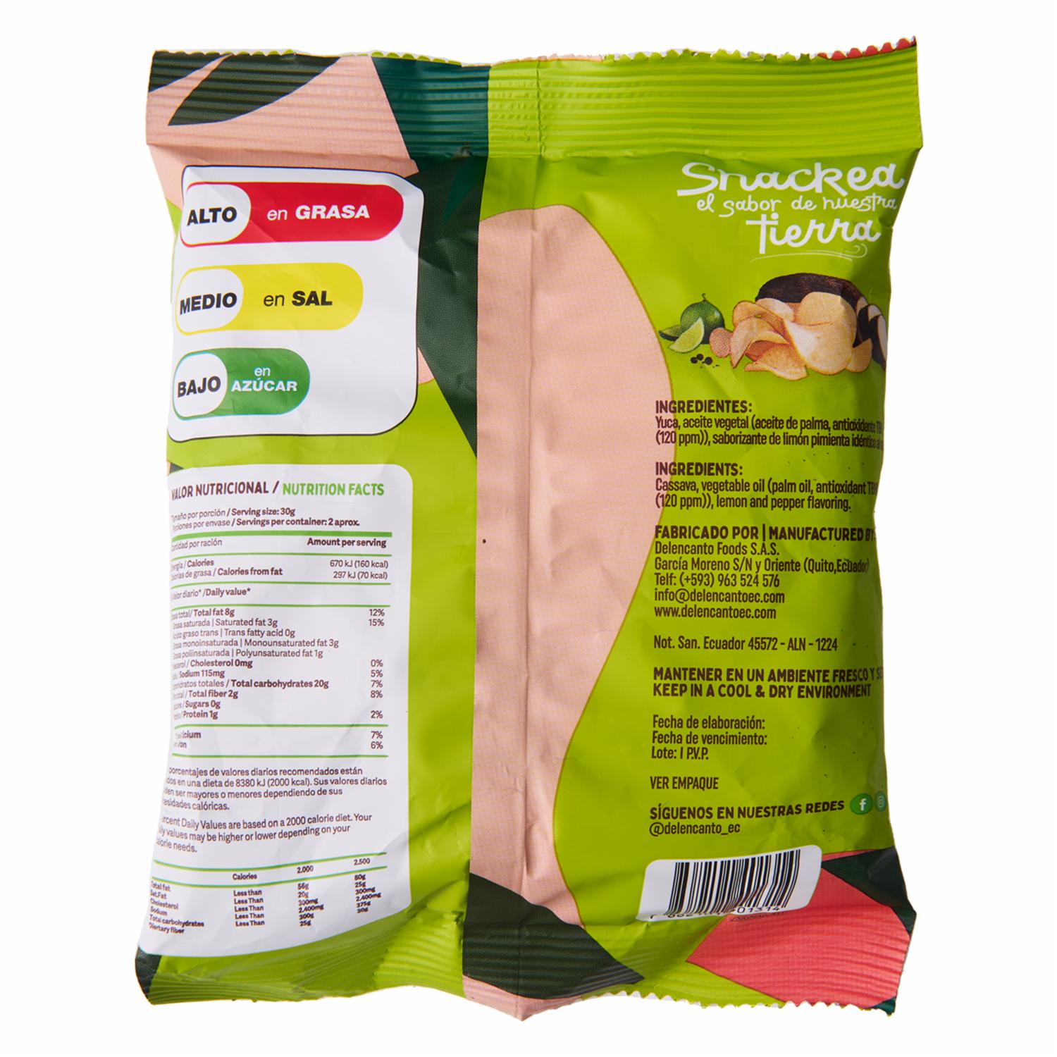 Chips De Yuca Frita Sabor Limón Pimienta YUCAS 45 G