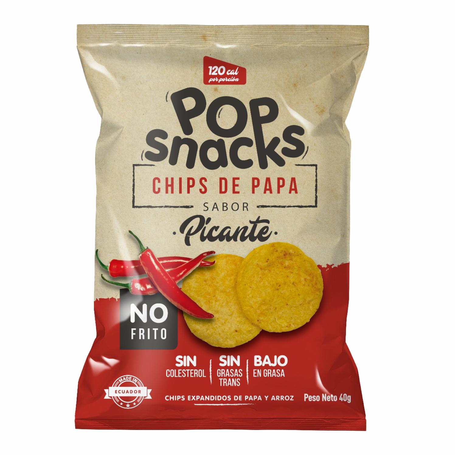 Chips No Fritos Papa Sabor Picante POP SNACKS 40 G – POP SNACKS. Disponible en nuestros locales. Precio y stock pueden variar según la tienda.