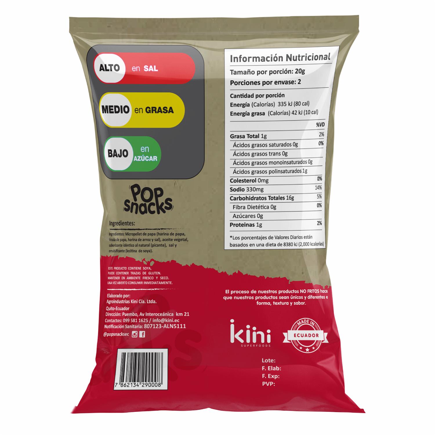 Chips No Fritos Papa Sabor Picante POP SNACKS 40 G