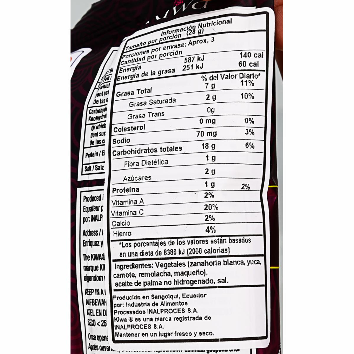 - El Mix De Vegetales Kiwa es una mezcla de chips de remolacha, plátano, zanahoria blanca, yuca y camote