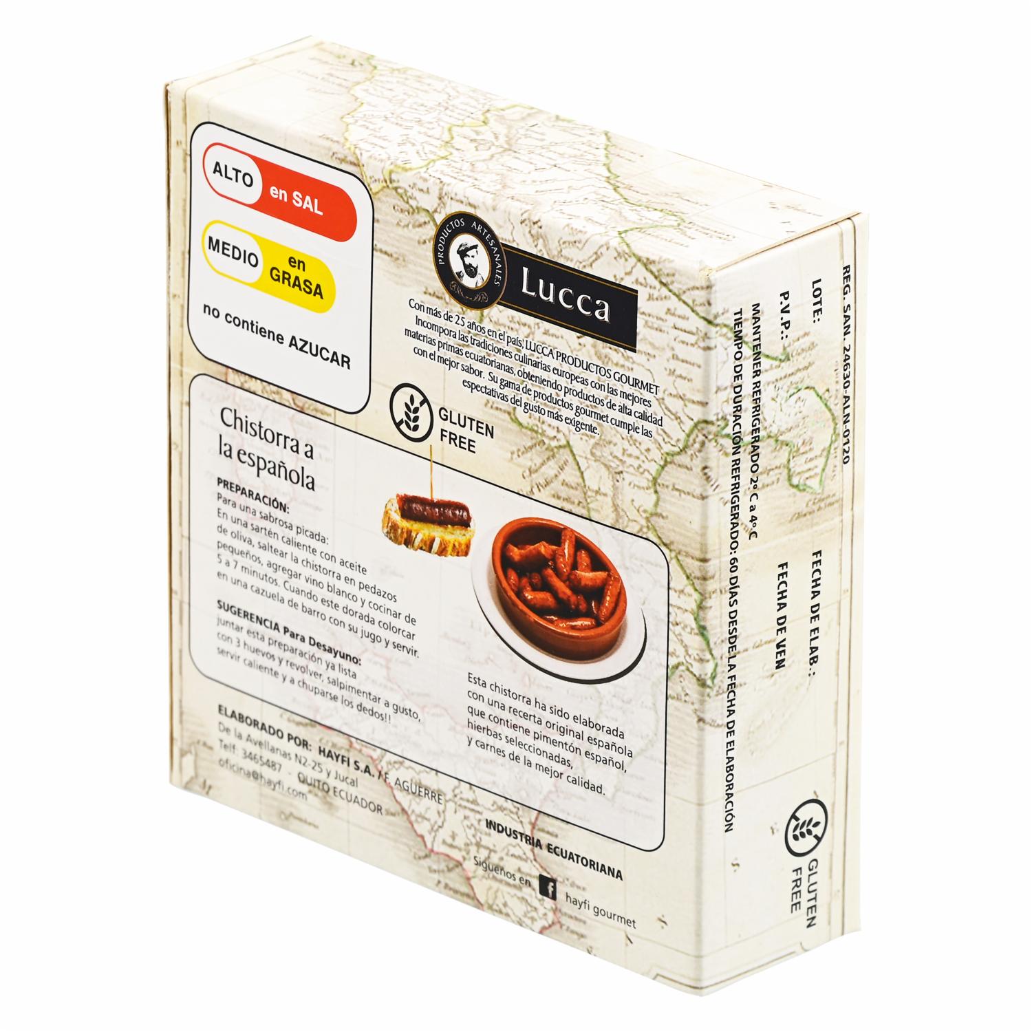Chisorra Fresca LUCCA 300 G – LUCCA. Disponible en nuestros locales. Precio y stock pueden variar según la tienda.