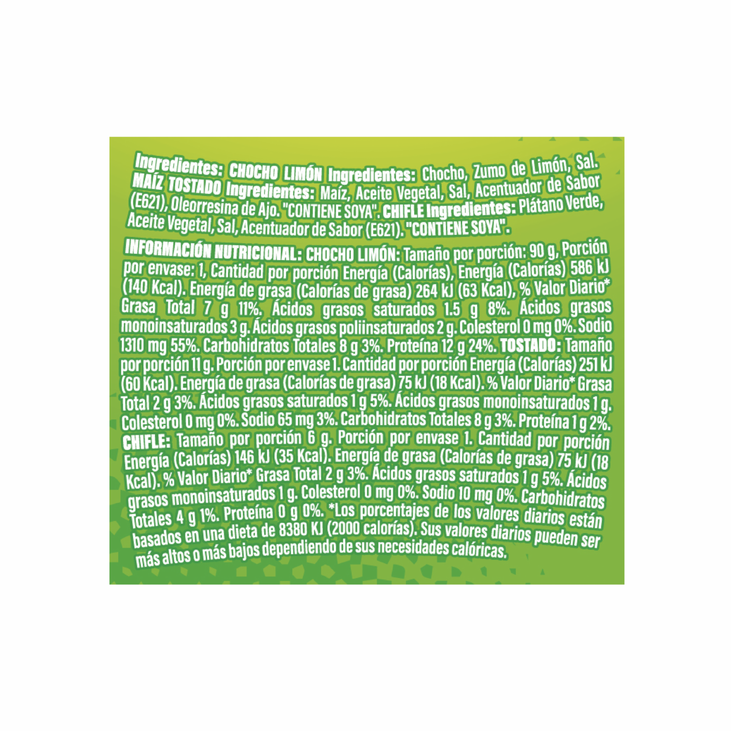 - Chochos con sabor a limón con tostado y chifles
