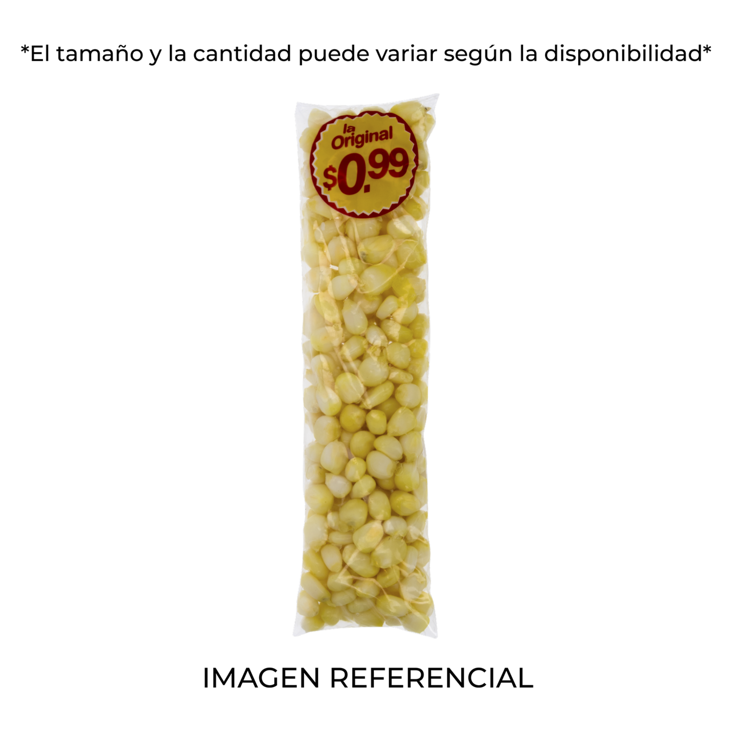 El choclo cocinado en funda de LA ORIGINAL es una opción rápida y deliciosa para tus comidas. A tan solo 0.99 centavos, este choclo es perfecto para ensaladas, sopas y acompañamientos. El producto se entrega en presentación de funda o malla, según disponibilidad