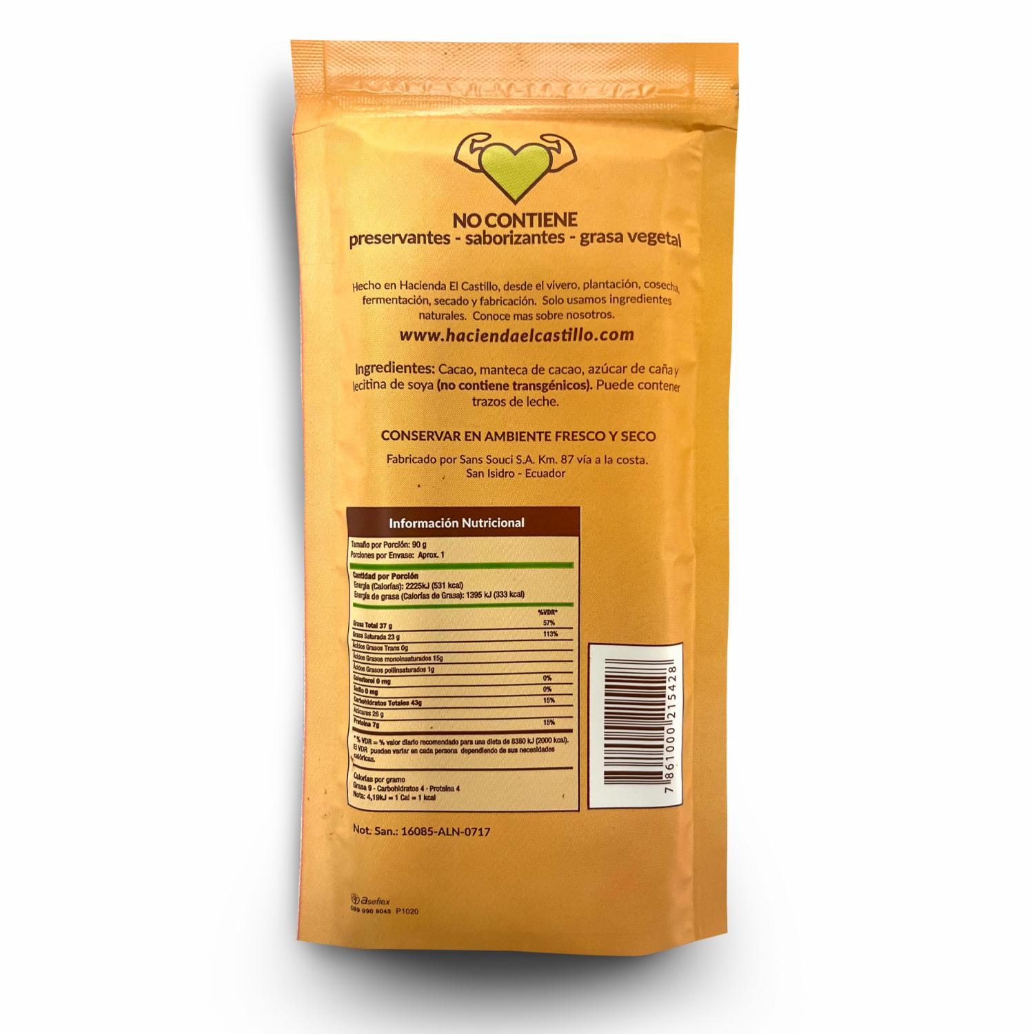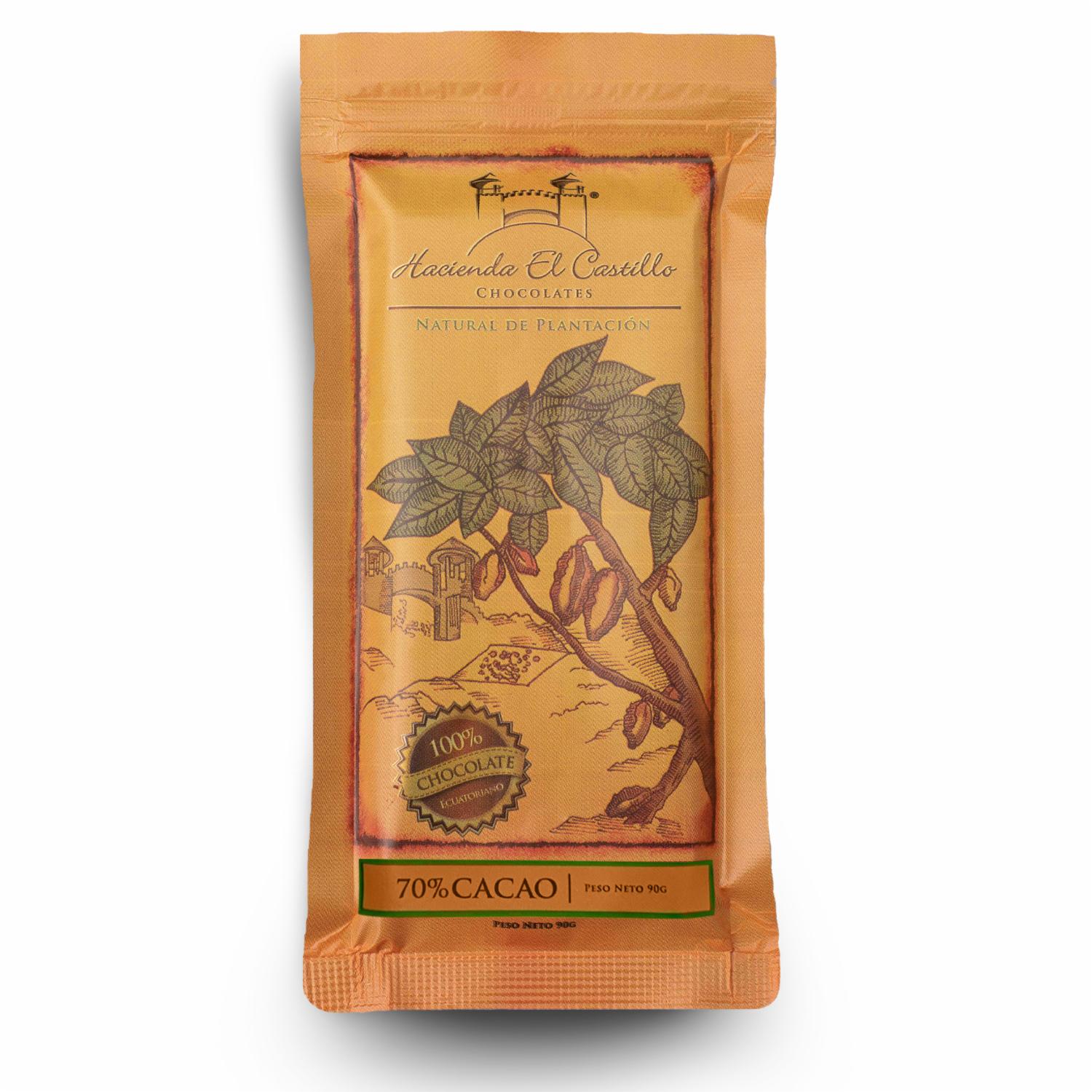 Chocolate 70% Cacao Ecuatoriano HACIENDA EL CASTILLO 90 G