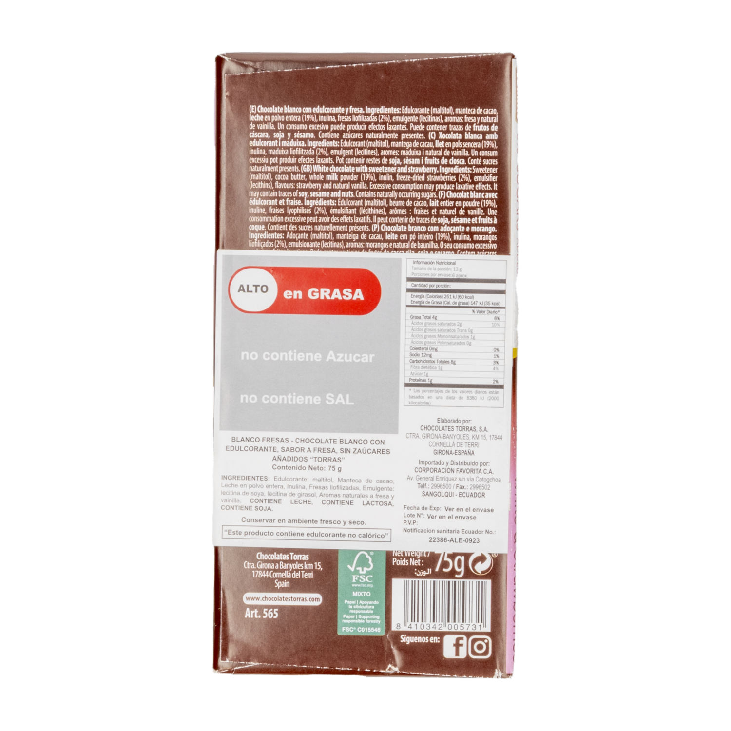 Chocolate Blanco Sabor A Avena TORRAS 75 G