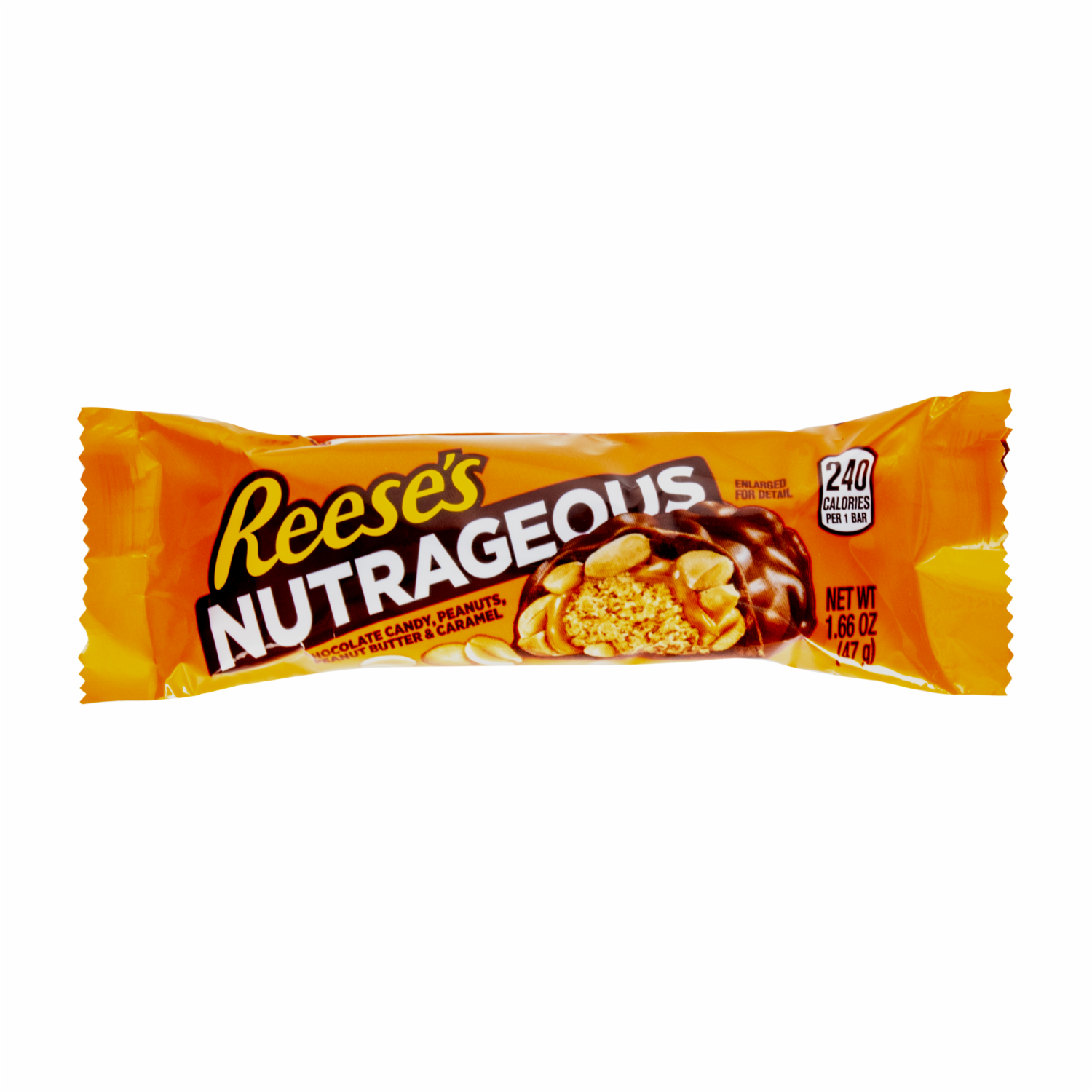 El clasico chocolate americano de crema de cacahuete envuelta en chocolate ahora llega en forma de barrita con crujiente chocolate y rellena de cacahuetes y crema de caramelo.