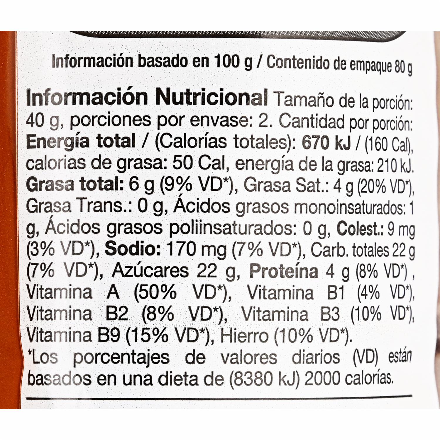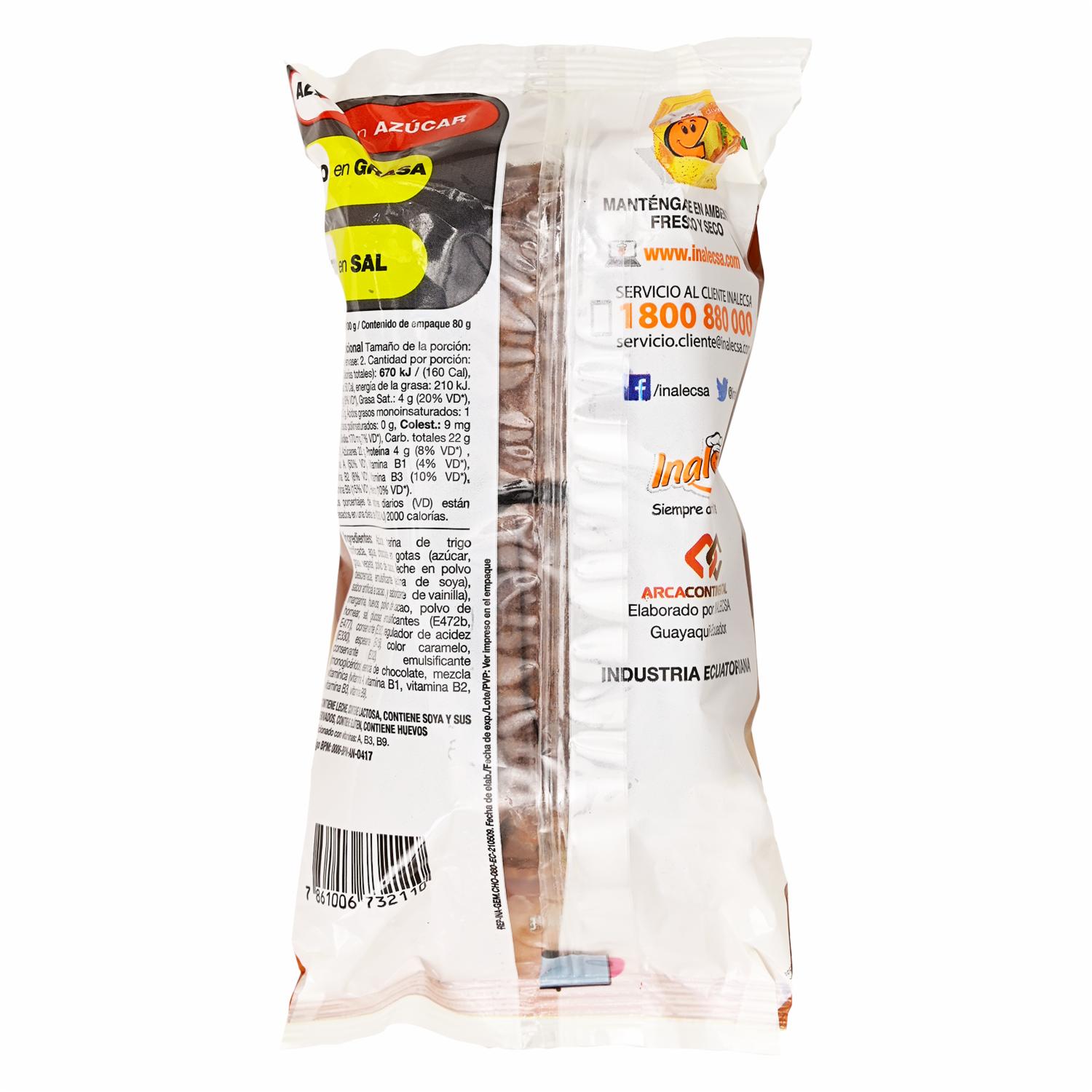 - Producto alimenticio - Sabor a chocolate - Contiene chispas de chocolate - Marca Inalecsa