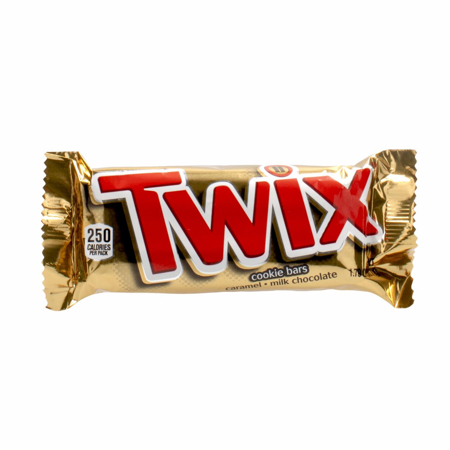 Twix es una barra de chocolate, compuesta de una galleta en el centro, cubierta de caramelo y recubierta de chocolate con leche