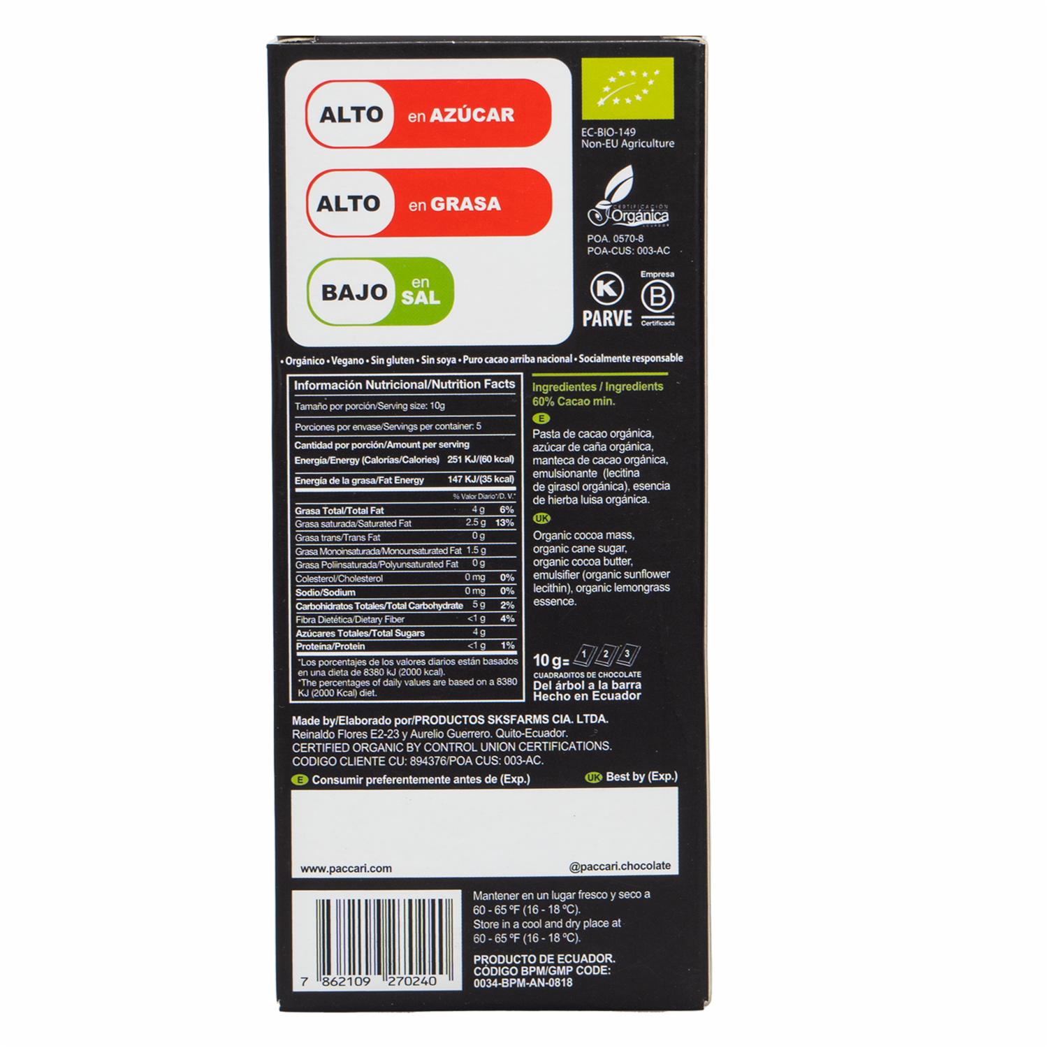 Chocolate Con Hierba Luisa PACCARI 50 G