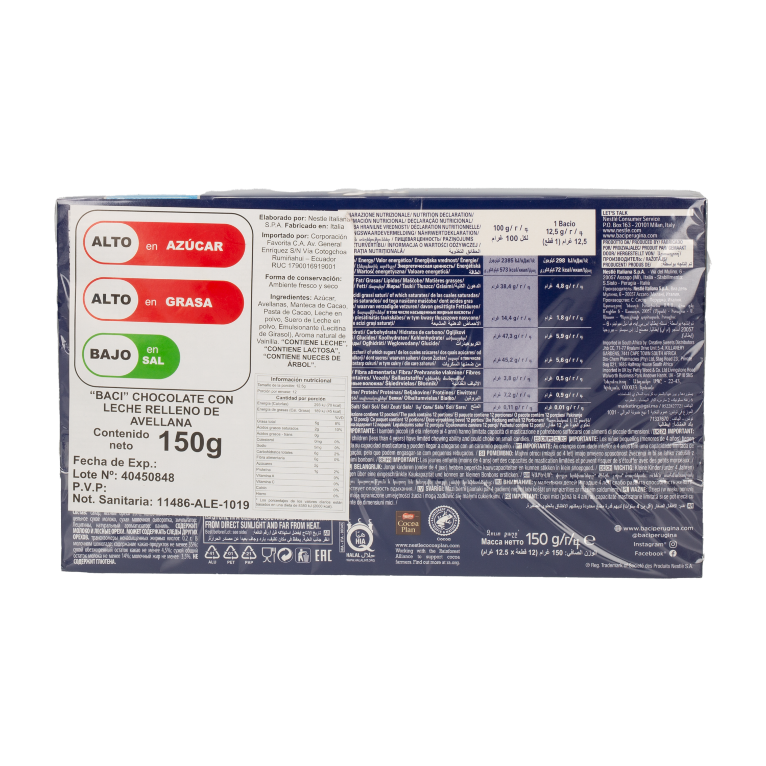 consultando preciosChocolate Con Leche Relleno De Avellana Sin Gluten BACI 150g – BACI. Disponible en nuestros locales. Precio y stock pueden variar según la tienda.