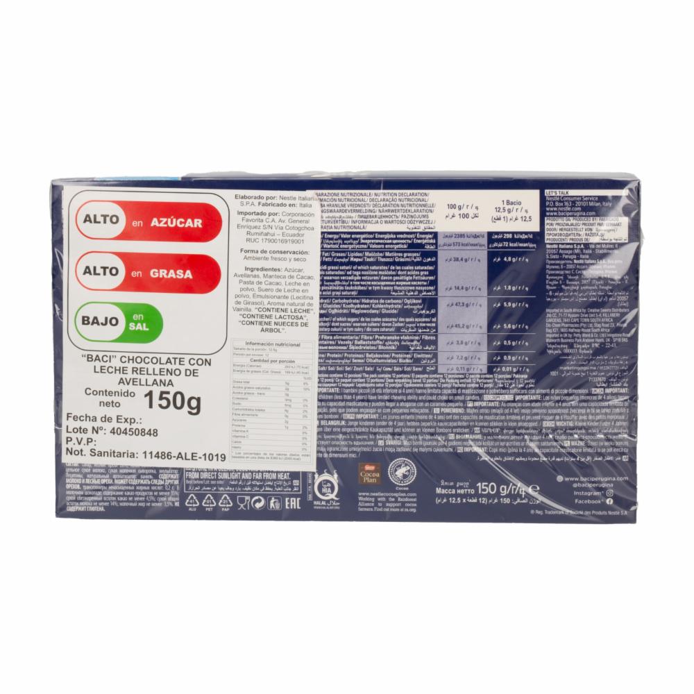 Chocolate Con Leche Relleno De Avellana Sin Gluten BACI 150g – BACI. Disponible en nuestros locales. Precio y stock pueden variar según la tienda.