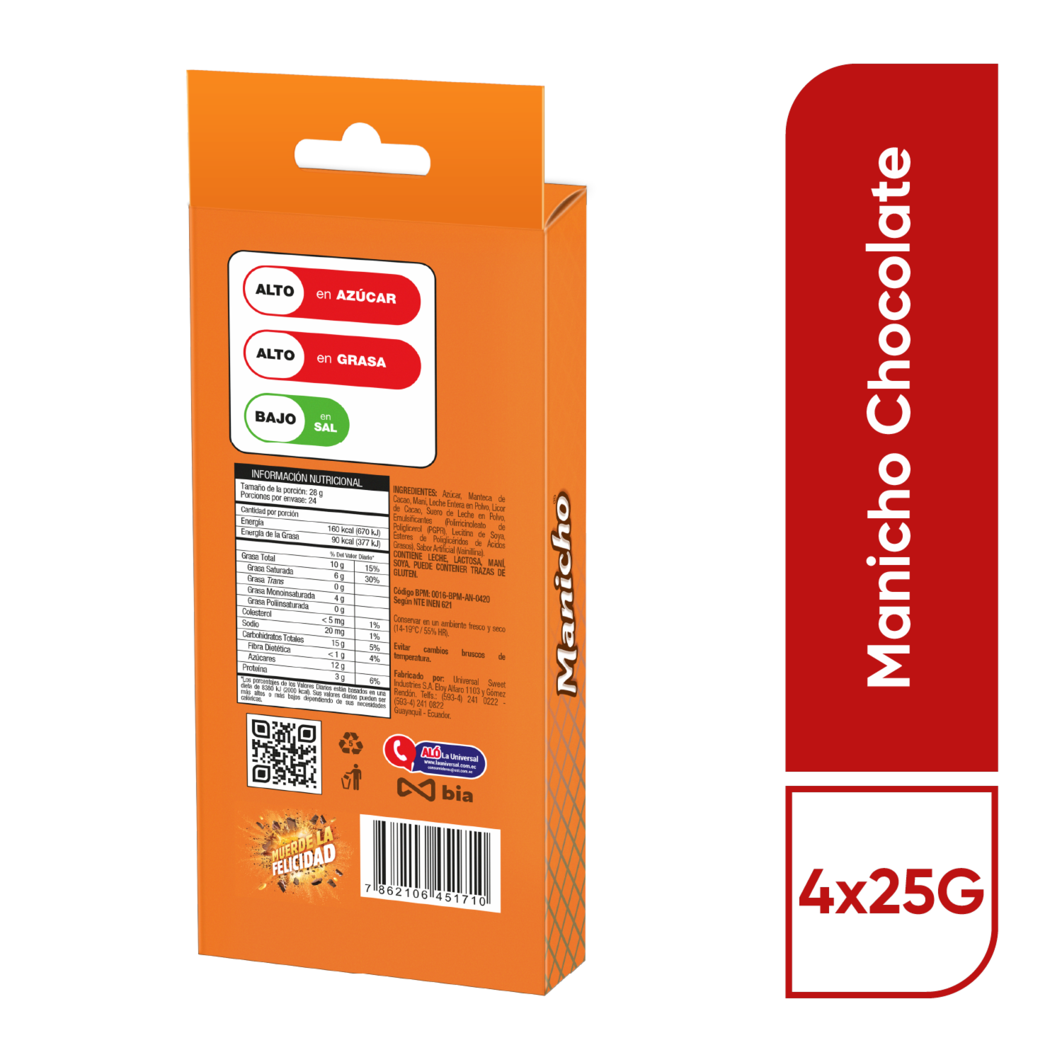 - Barra de chocolate con leche y maní