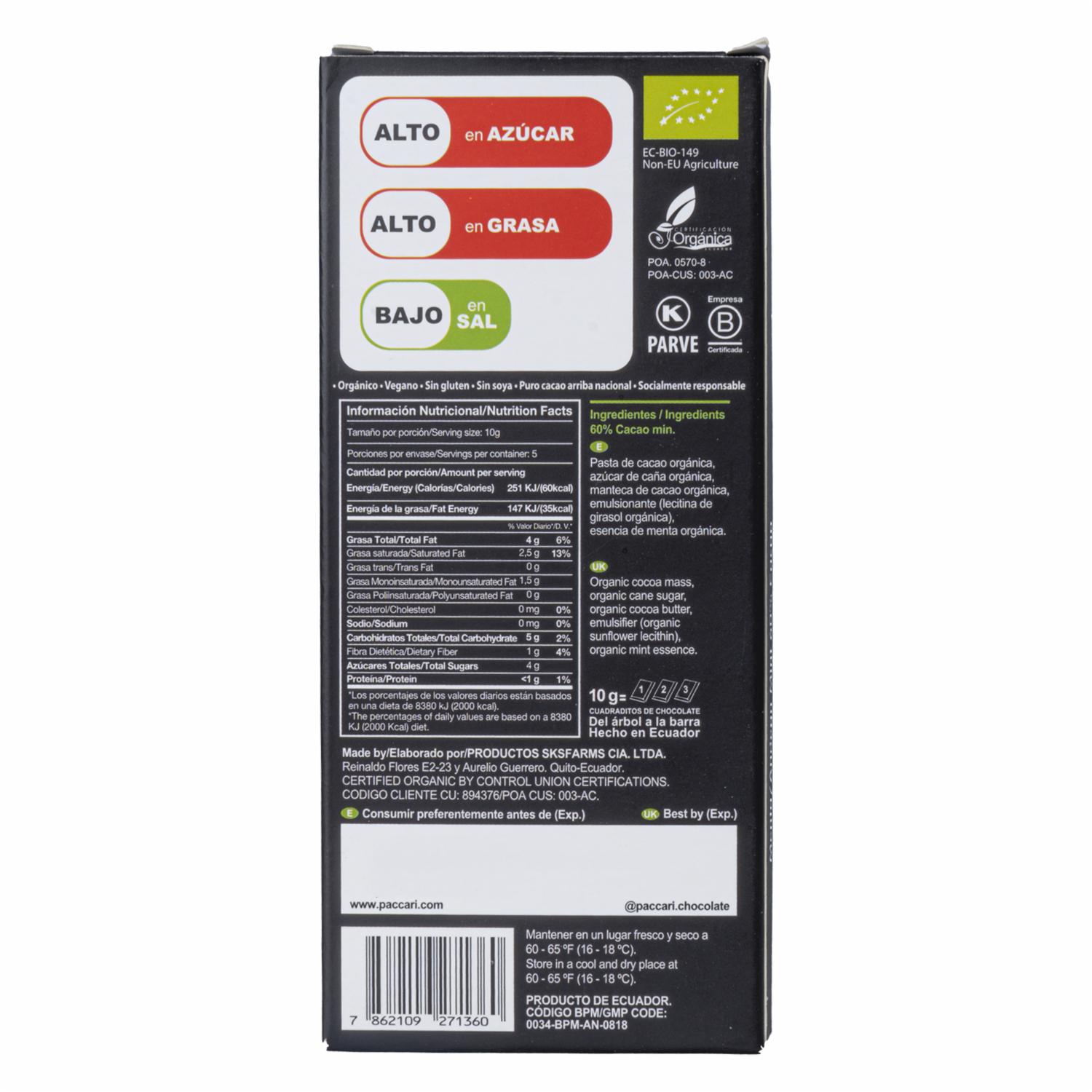 Chocolate Con Menta PACCARI 50 G – PACCARI. Disponible en nuestros locales. Precio y stock pueden variar según la tienda.
