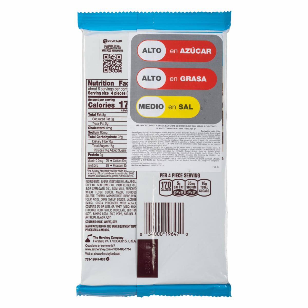 - Disfruta del inconfundible sabor del Chocolate Cookies and Cream de HERSHEYS, una deliciosa mezcla de chocolate blanco cremoso con pedacitos crujientes de galleta de chocolate. Cada bocado es una explosión de textura y dulzura que encanta a grandes y chicos por igual