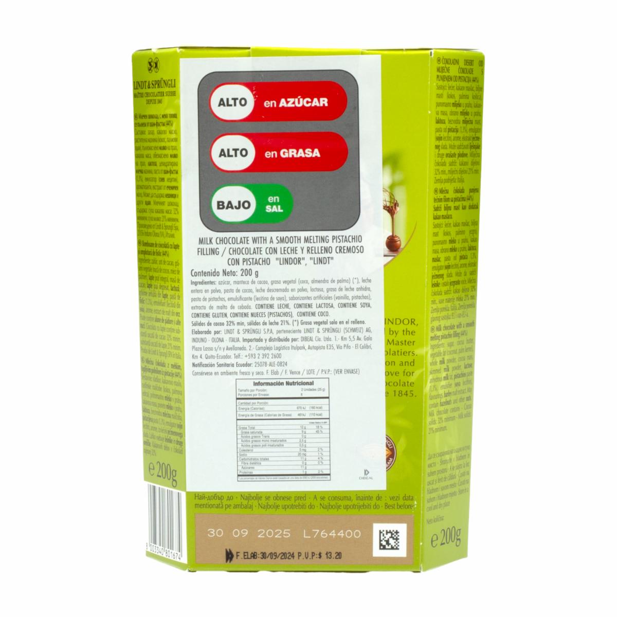 Chocolate Cornet Pistacho LINDT 200 G – LINDT. Disponible en nuestros locales. Precio y stock pueden variar según la tienda.