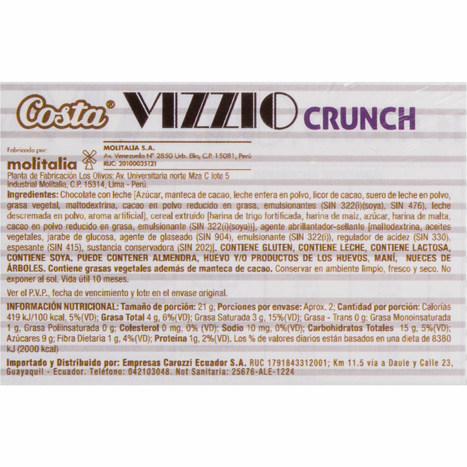 Crujiente por fuera, suave por dentro. VIZZIO te ofrece el equilibrio perfecto entre el chocolate y su clásico centro crocante. Un snack irresistible para acompañar tus antojos dulces con un toque de textura única