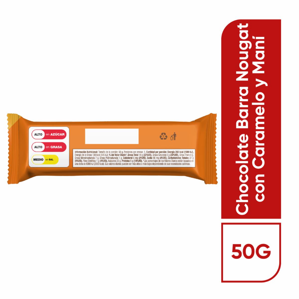 Barra de nougat caramelo y mani con cobertura de chocolate de leche