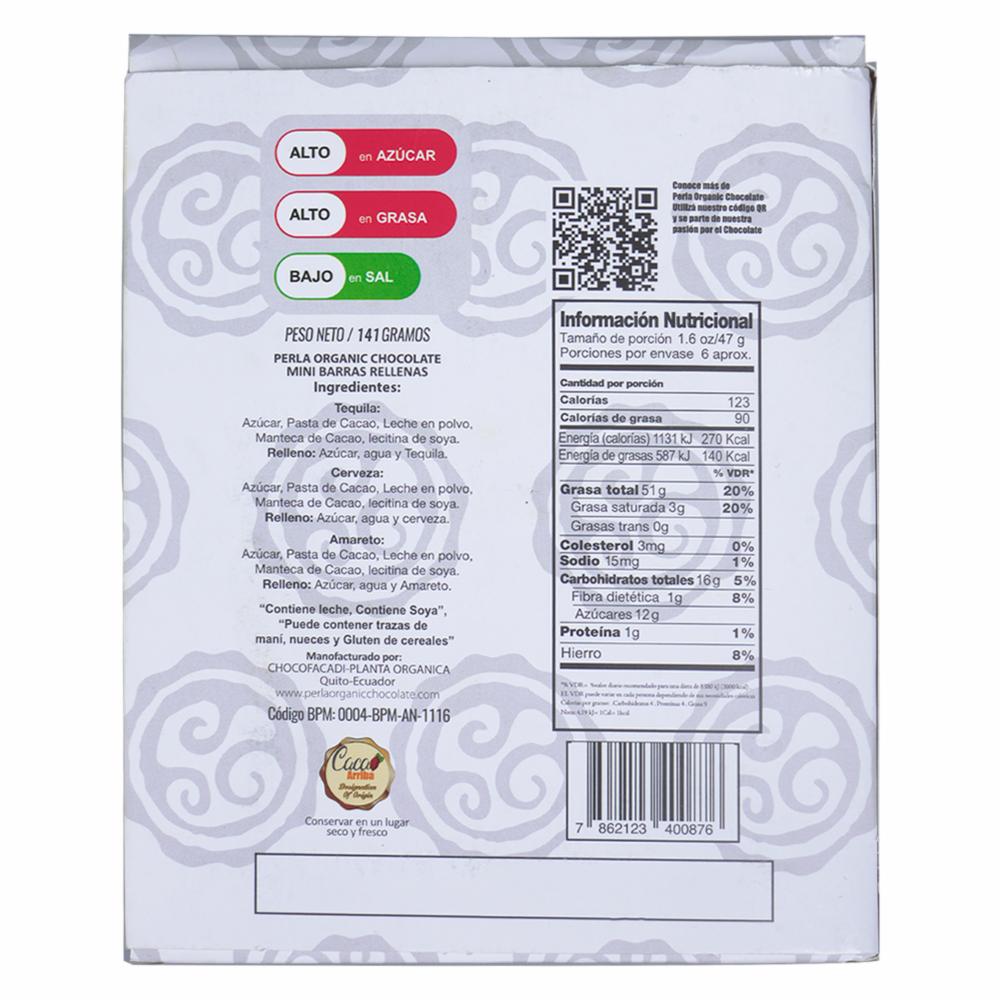 Barra de chocolate rellena con centro líquido de licor, chocolate orgánico