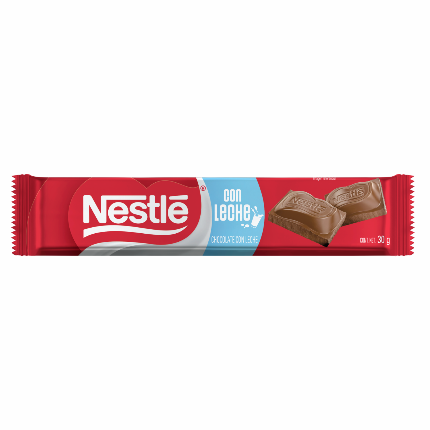 - Chocolate en Barra con Leche NESTLÉ 30g Disfruta del sabor clásico y cremoso del Chocolate en Barra con Leche NESTLÉ de 30g, una deliciosa combinación de chocolate suave y leche de calidad