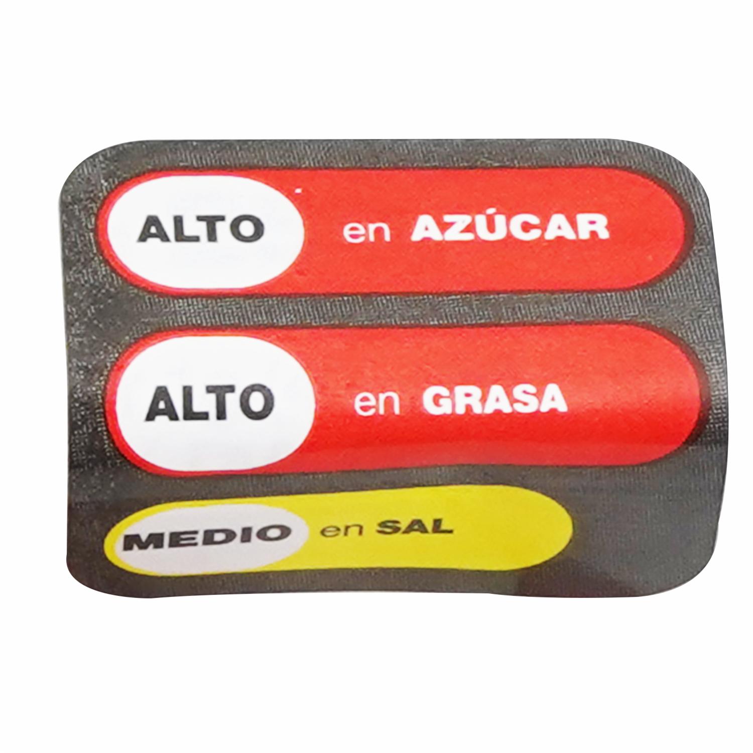 Tiene un relleno de turrón y mantequilla de cacahuete con una cobertura de caramelo y cacahuetes troceados