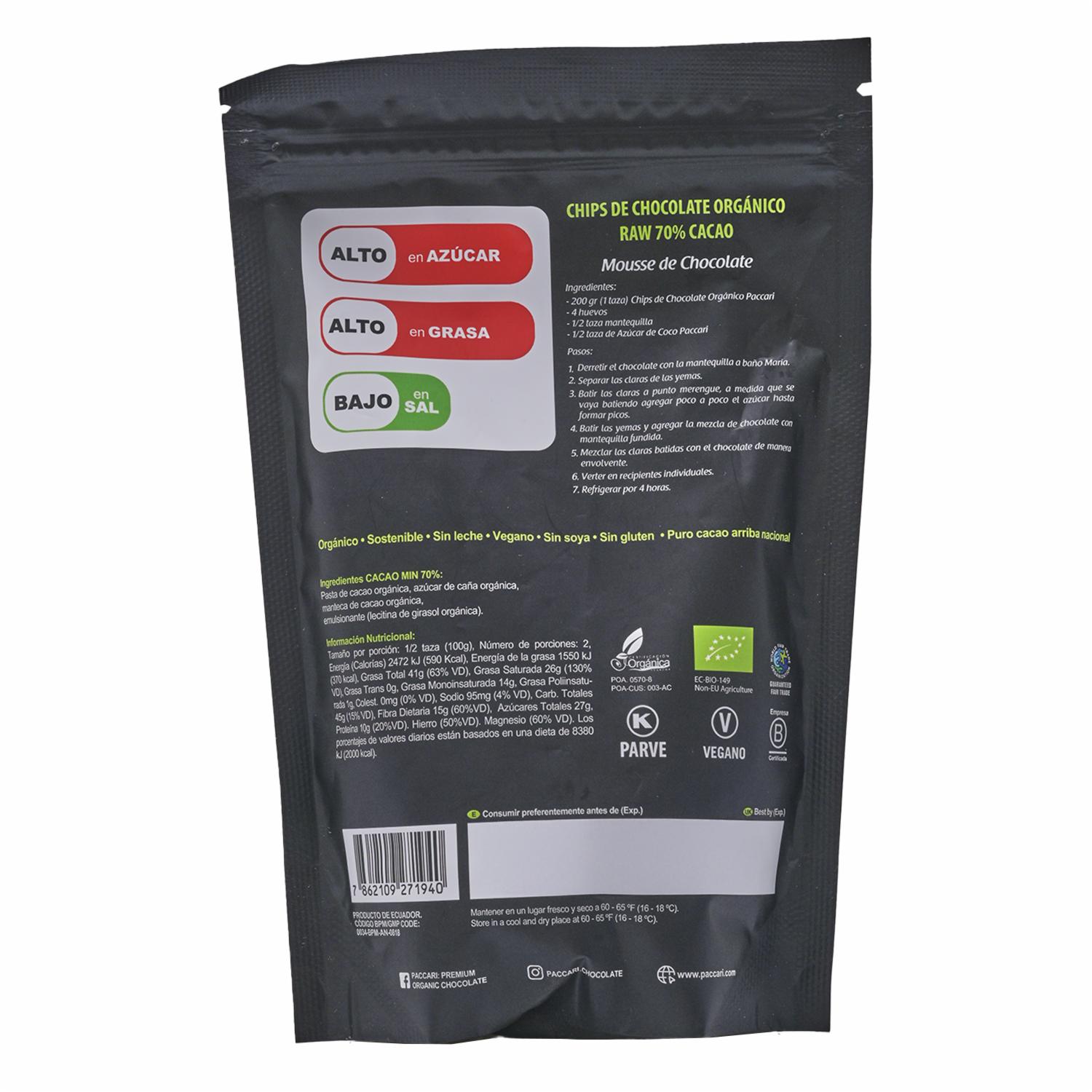 Chocolate En Gotas Al 70% PACCARI 200 G – PACCARI. Disponible en nuestros locales. Precio y stock pueden variar según la tienda.