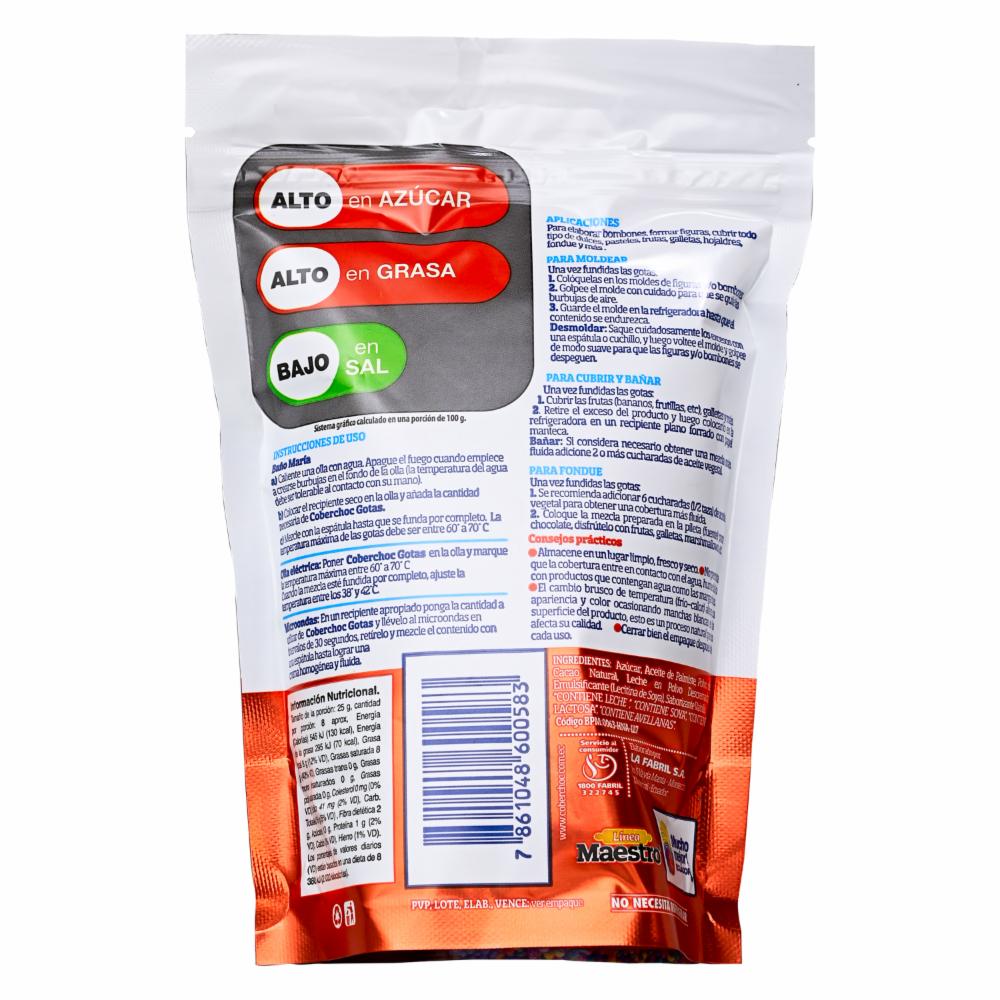 Gotas Coberchoc Dulces 200 Gramos Es Una Cobertura Con Sabor A Chocolate Dulce En Forma De Gota, Ideal Para Repostería, Pastelería Y Fondue