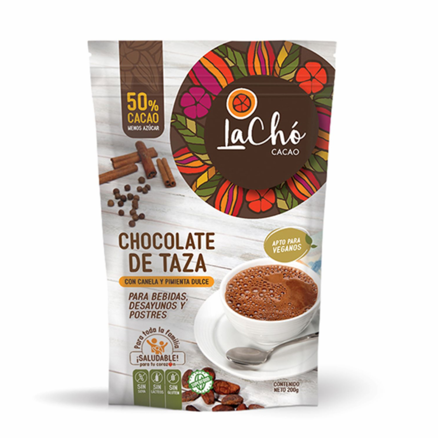 Chocolate En Polvo De Taza Con 50% De Cacao Canela Y Pimienta Dulce LACHÓ CACAO 200 G