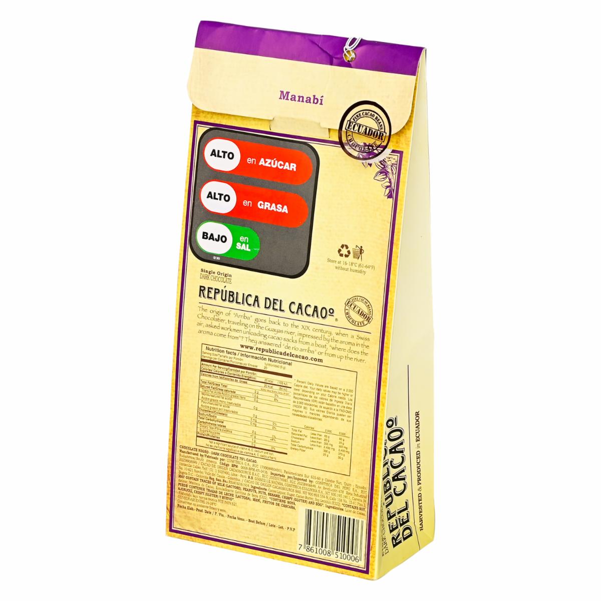 Chocolate Manabí Funda REPUBLICA DEL CACAO 100 g