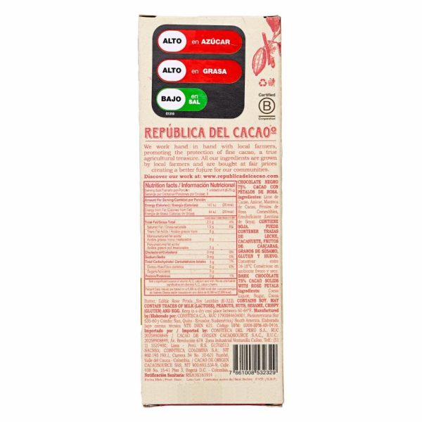 Chocolate Negro Rosas REPUBLICA DEL CACAO 50 g