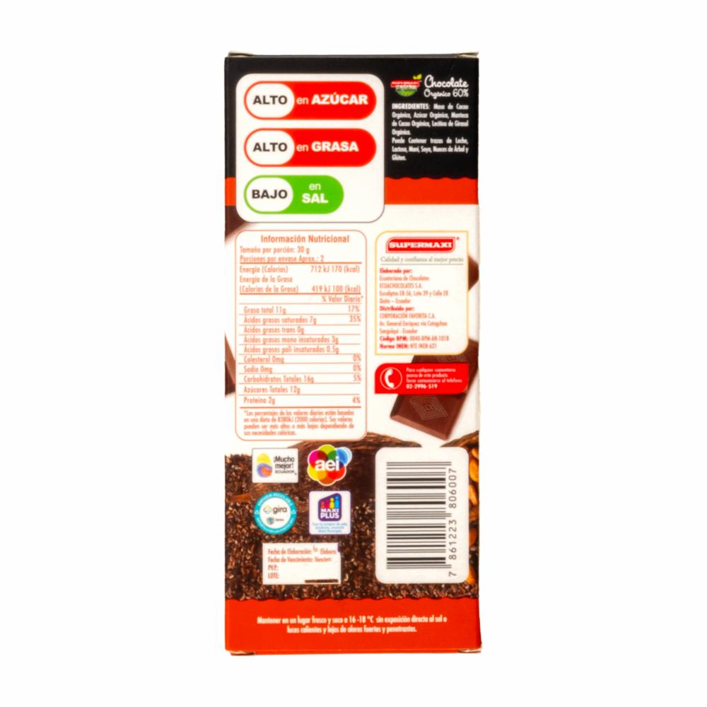 Chocolate Orgánico 60% SUPERMAXI 50 G