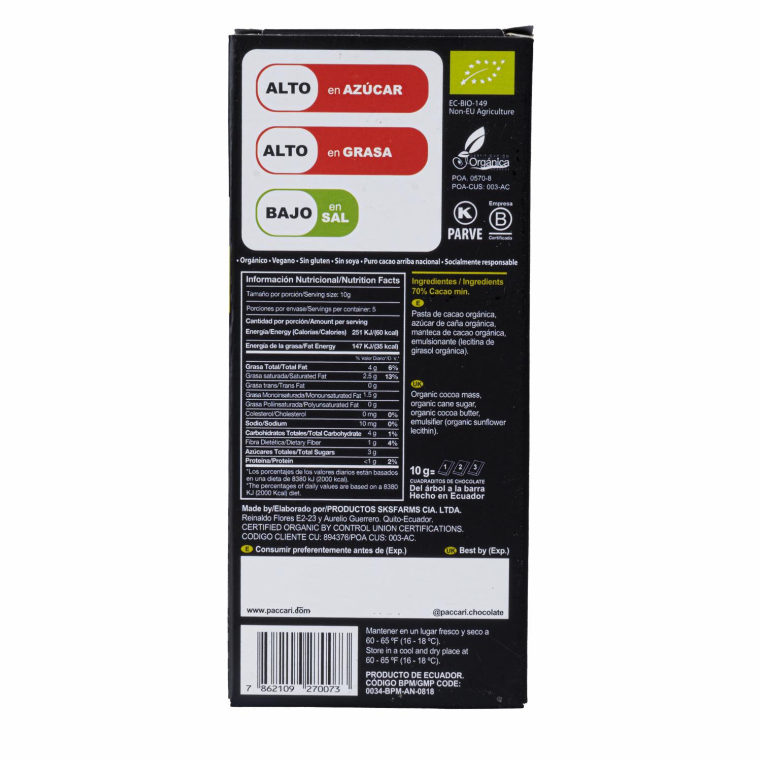 Chocolate Orgánico Barra Raw 0,7 PACCARI Tableta
