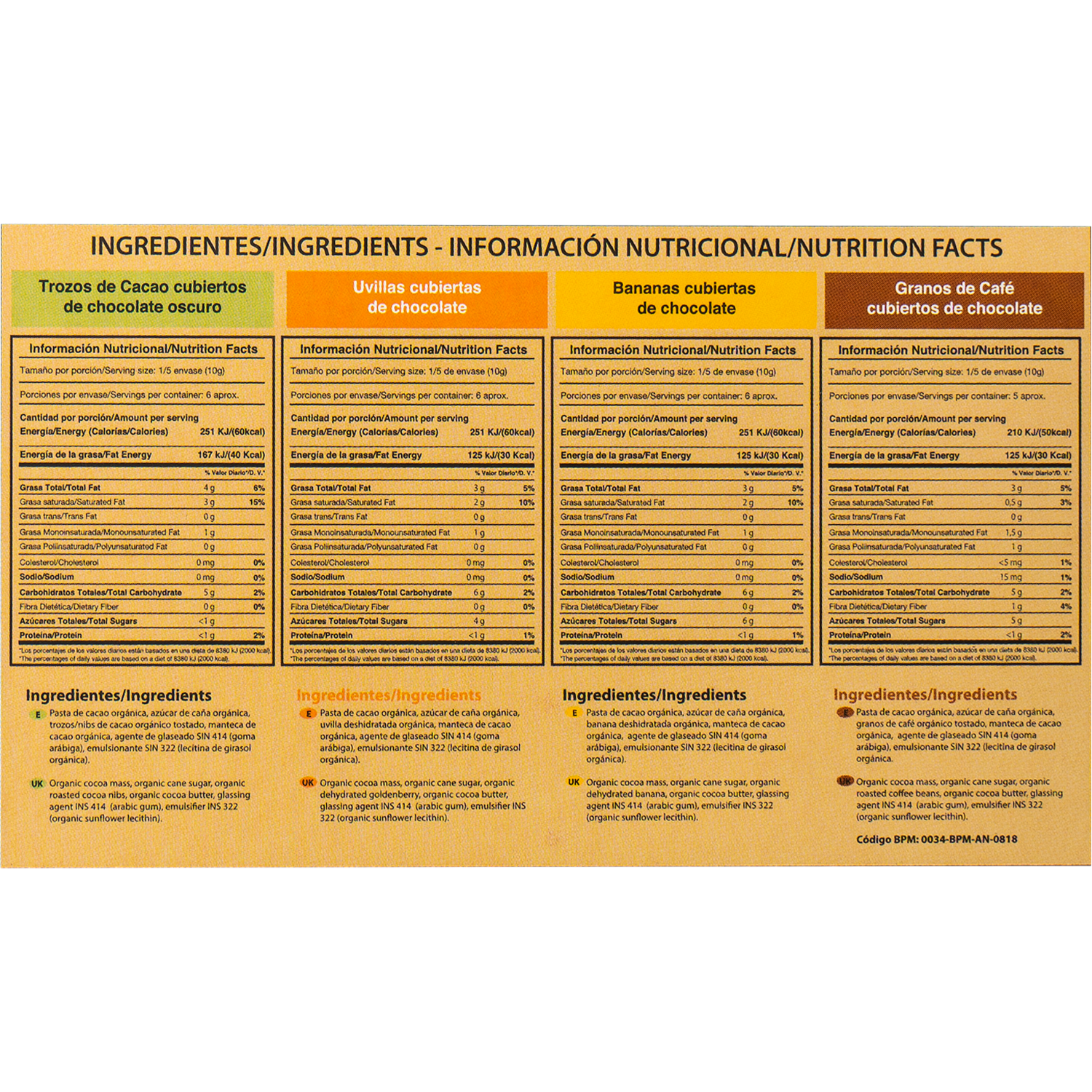 Chocolate orgánico 60% cacao ecuatoriano con frutas, vegano, libre de glúten