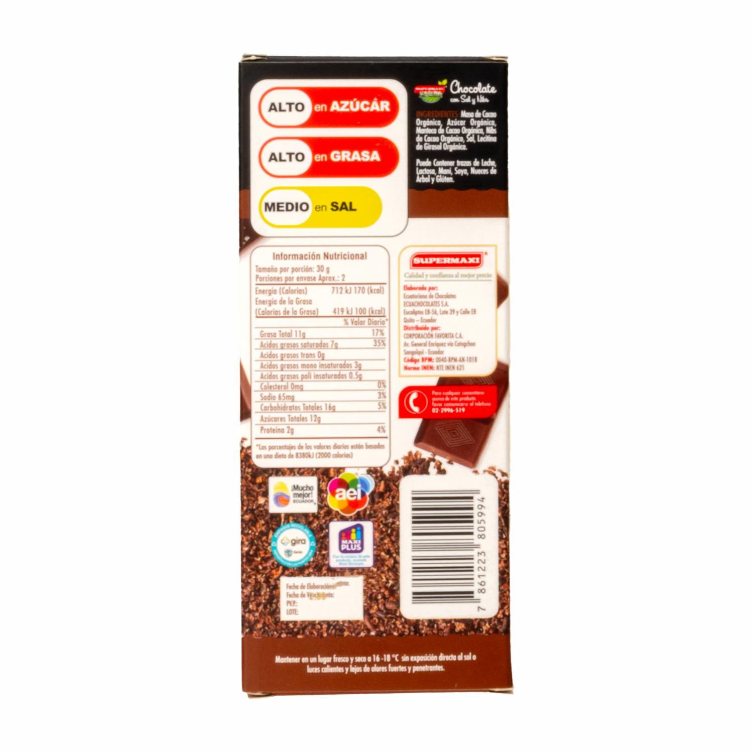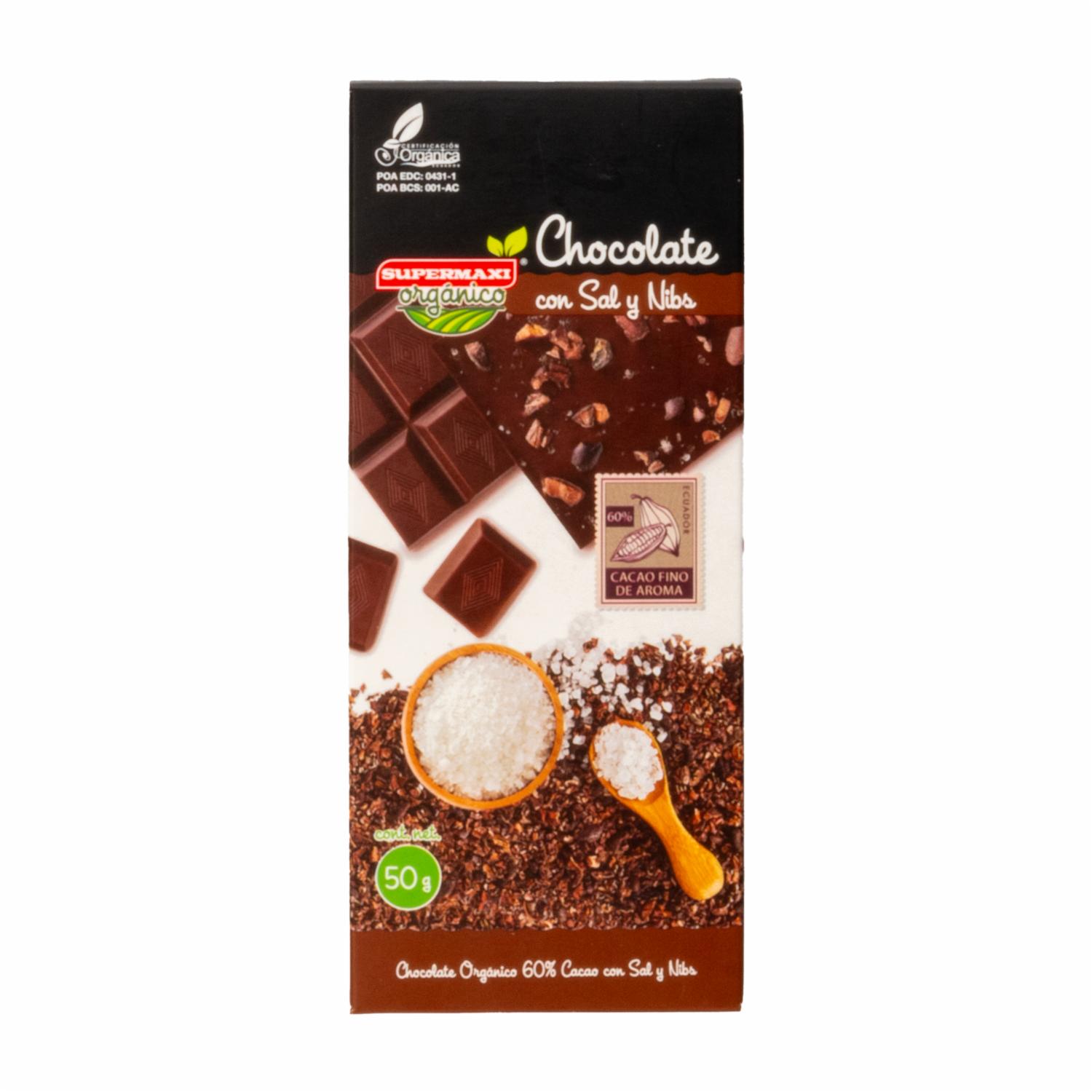 Chocolate Orgánico Con Sal Y Nibs SUPERMAXI 50 G