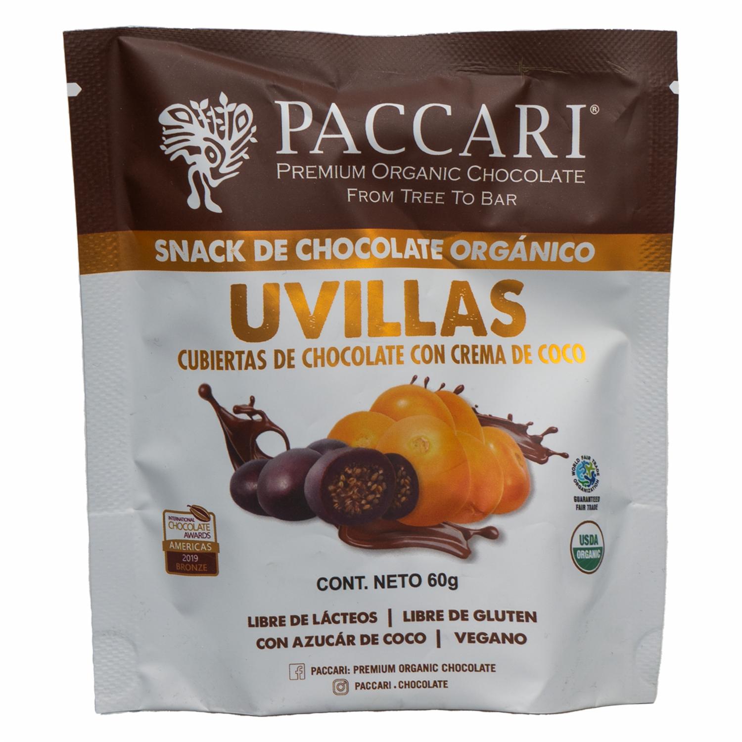 Chocolate Orgánico Uvillas Chocolate Y Crema De Coco PACCARI 60 G