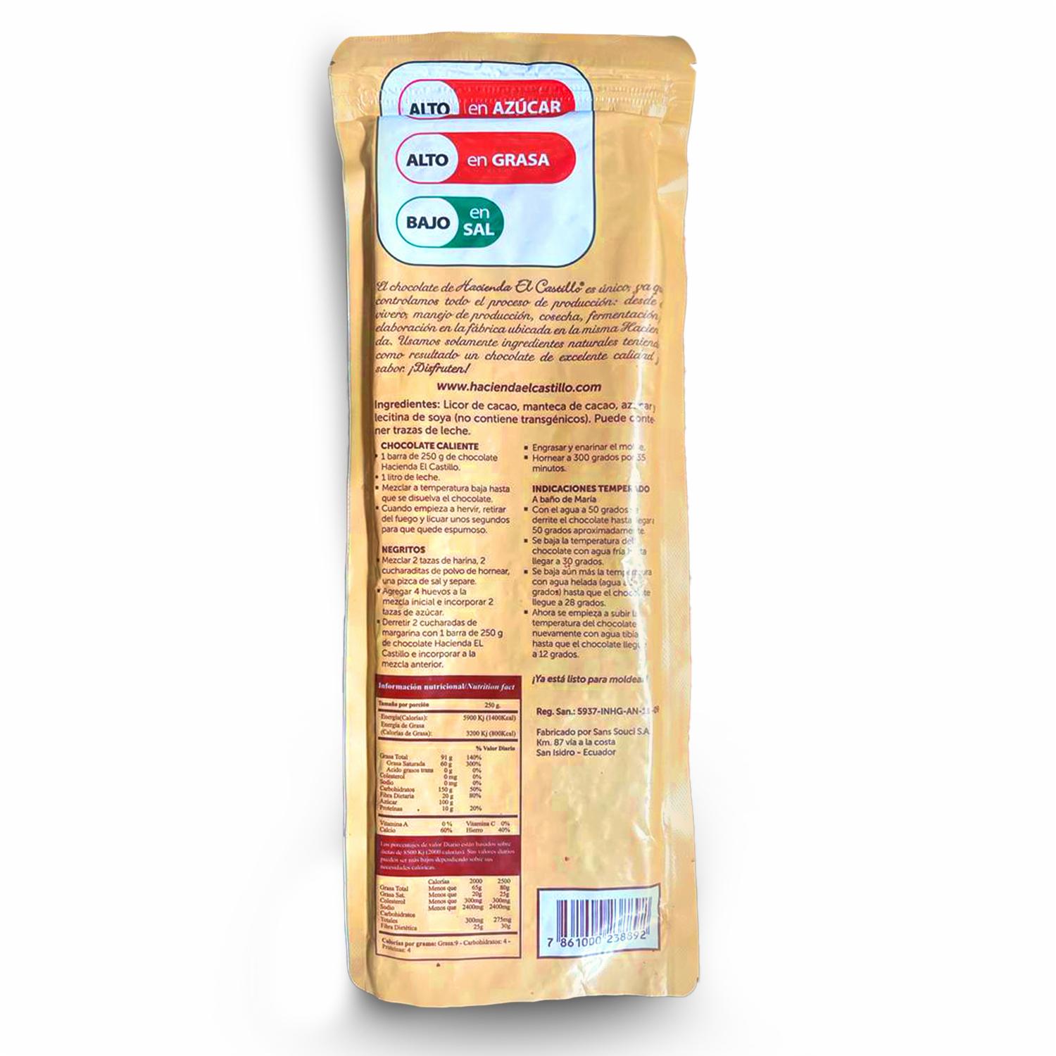 Chocolate Para Repostería HACIENDA EL CASTILLO 250 G – HACIENDA EL CASTILLO. Disponible en nuestros locales. Precio y stock pueden variar según la tienda.