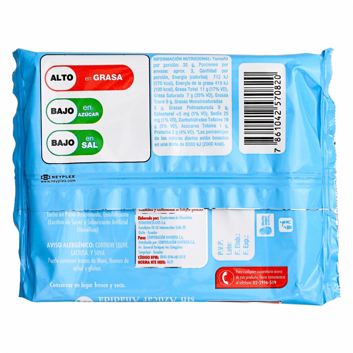 • Chocolate con leche sin azúcar, 100% ecuatoriano, echo con cacao fino de aroma