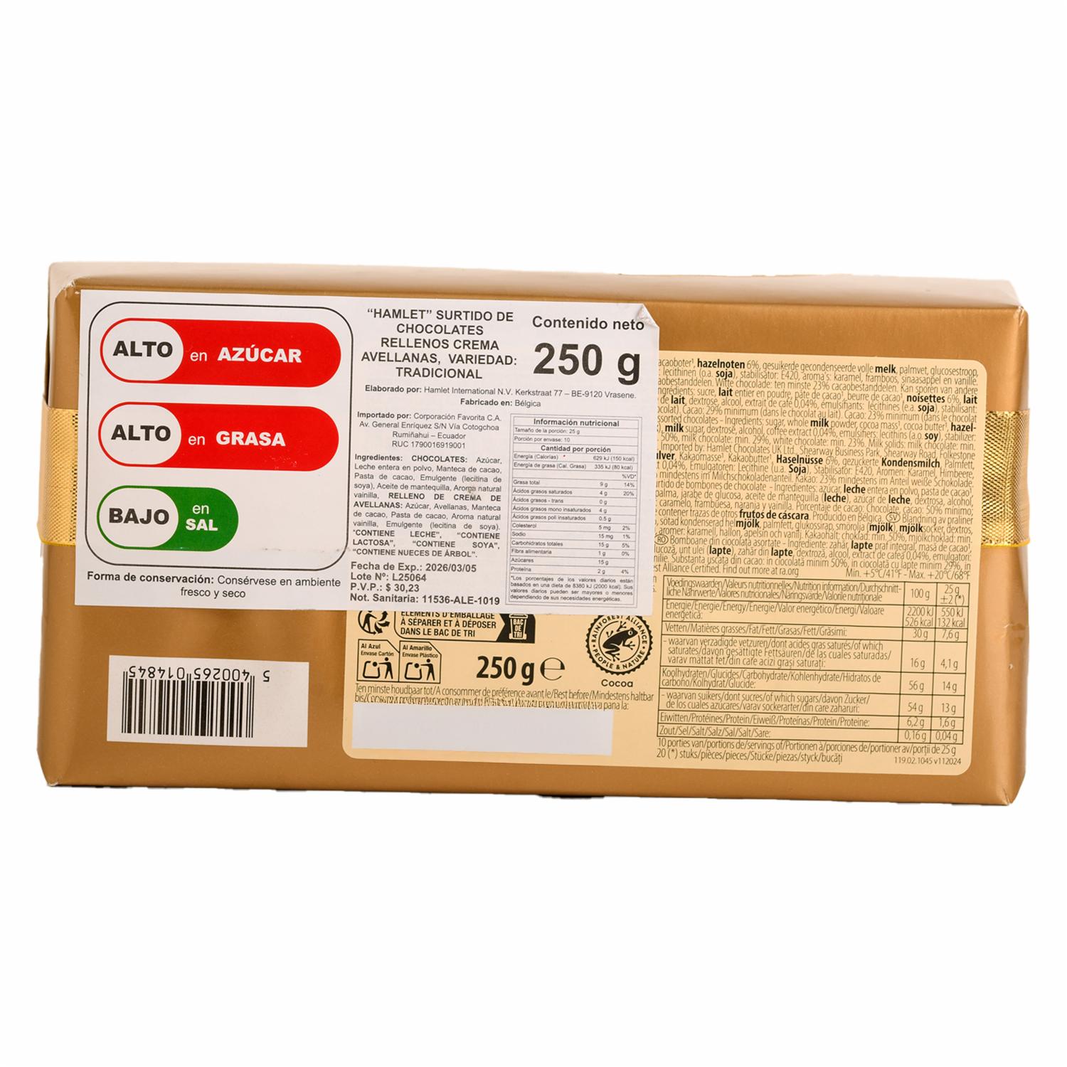 Chocolate Surtido Rellenos De Crema De Avellana con Diseño Tradicional HAMLET 250 G