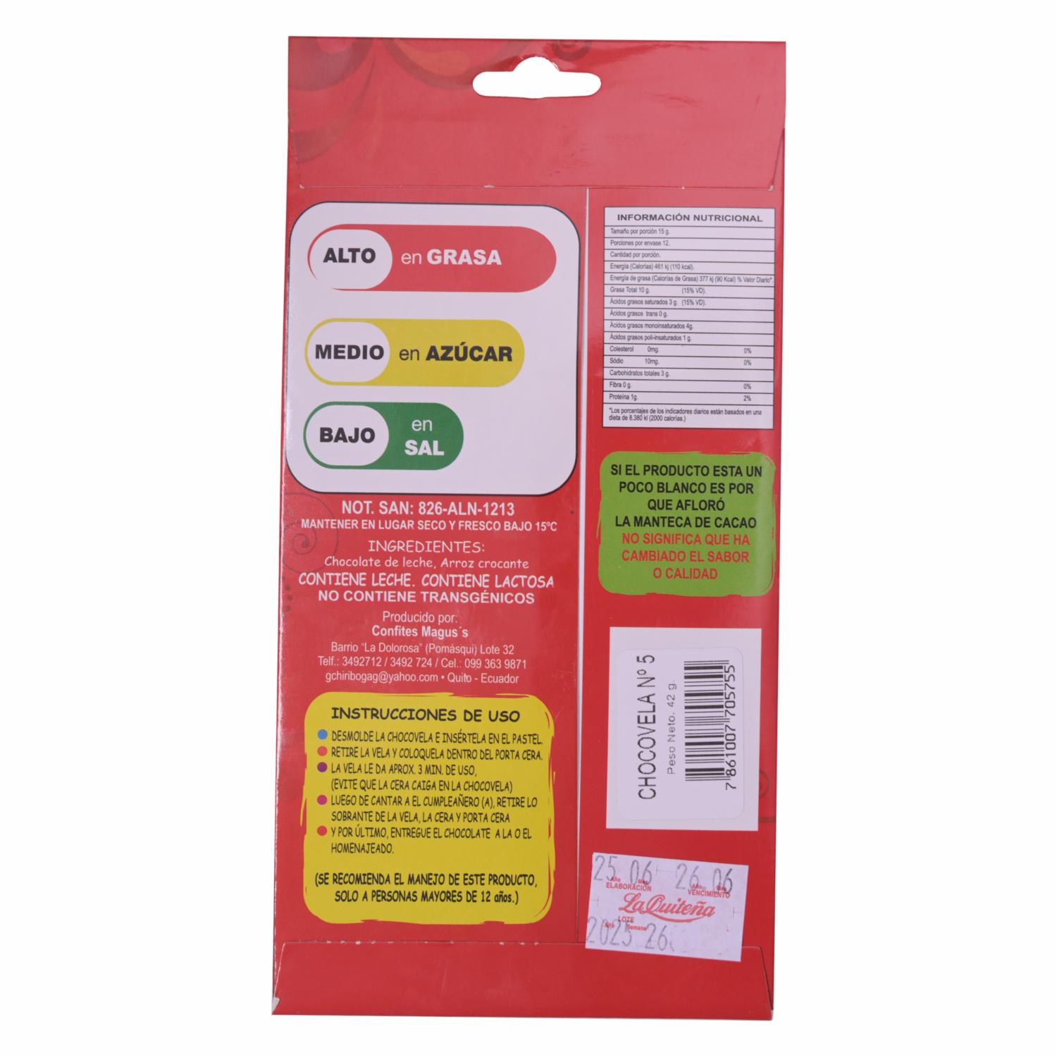 Chocovela Numero 5 LA QUITEÑA Unidad – LA QUITEÑA. Disponible en nuestros locales. Precio y stock pueden variar según la tienda.