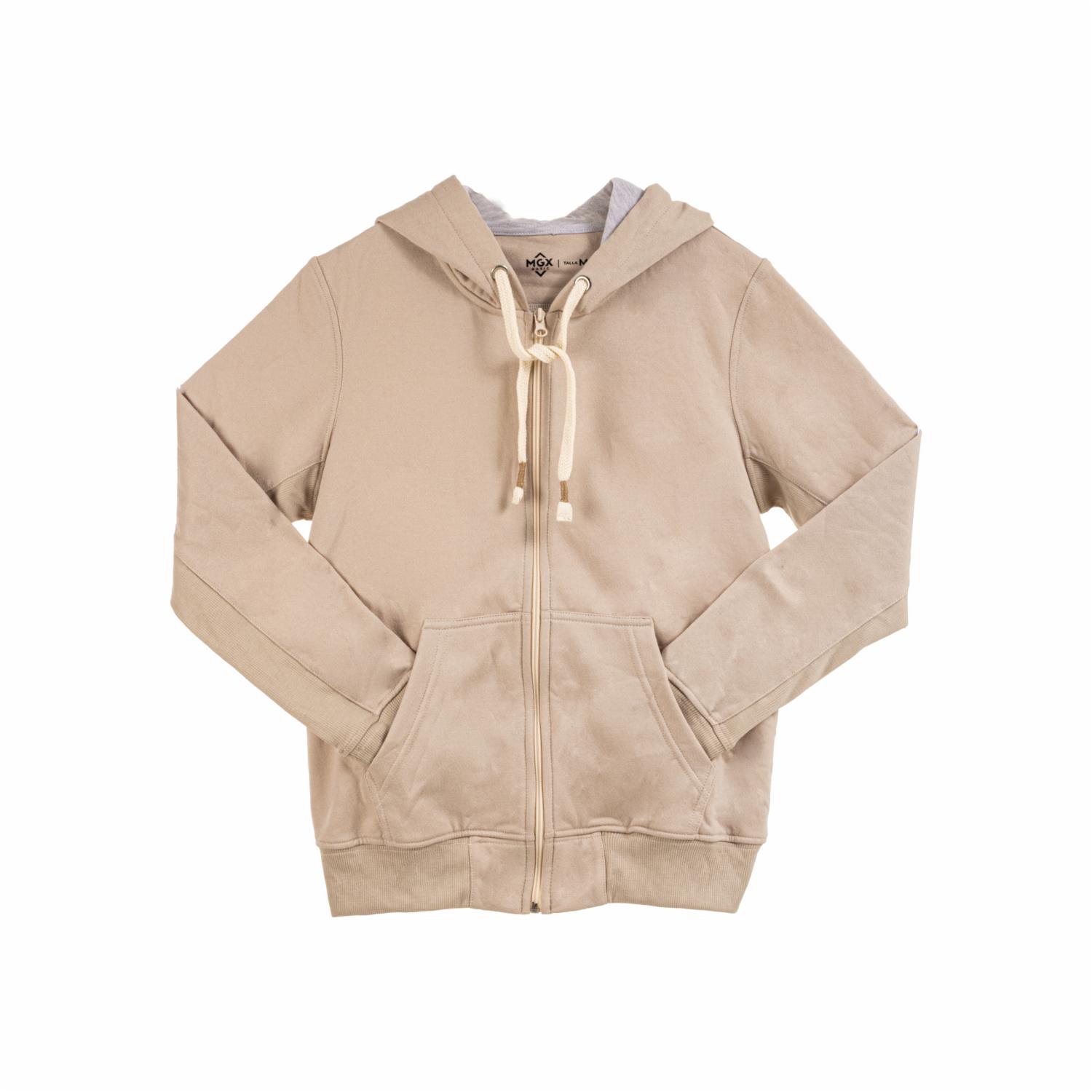 • Chompa con cierre bolsillos y capucha MGX BASIC, talla pequeño, color beige, para dama