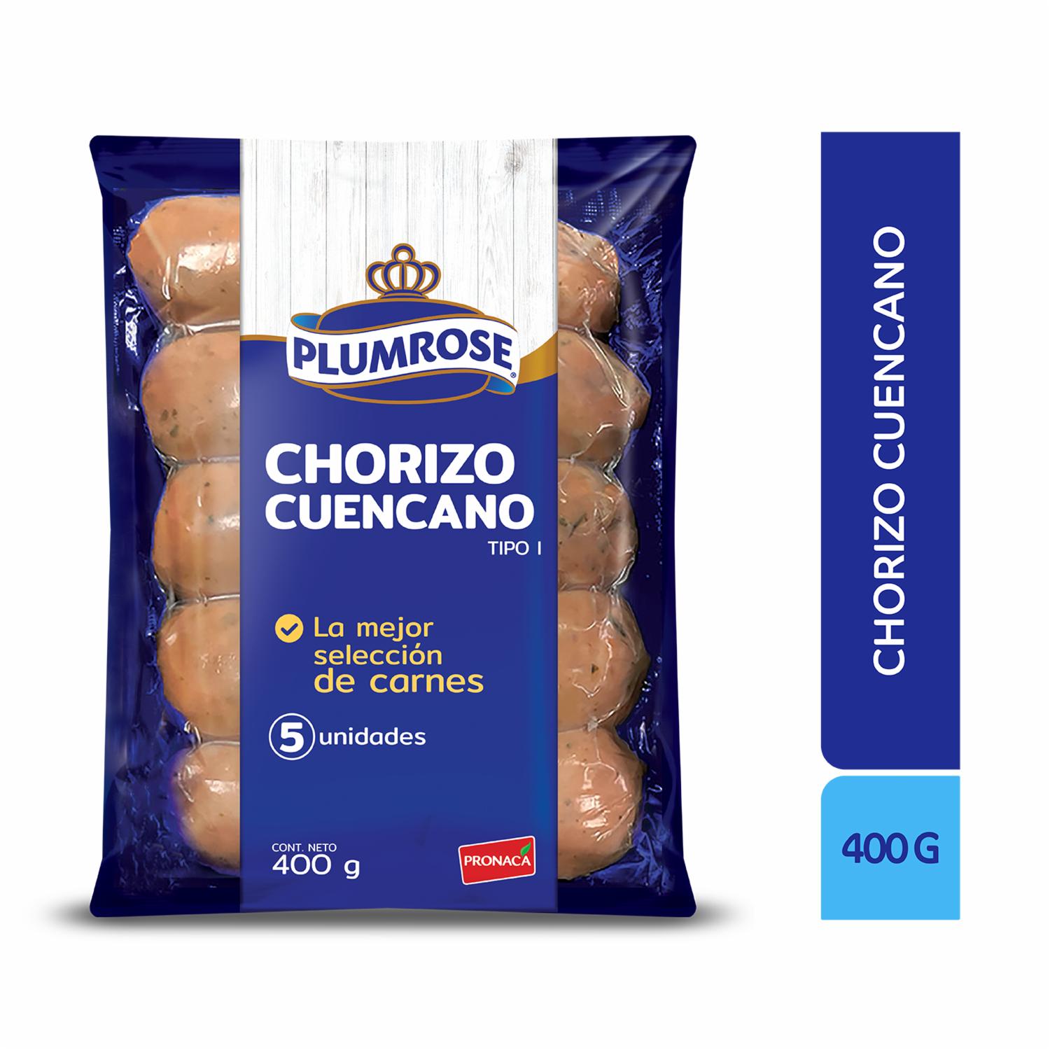 Chorizo Cuencano PLUMROSE 400 G – PLUMROSE. Disponible en nuestros locales. Precio y stock pueden variar según la tienda.