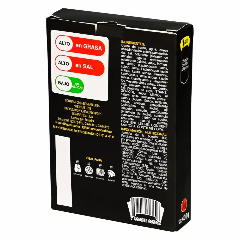 Chorizo Jalapeño Y Cheddar DON DIEGO 400g – DON DIEGO. Disponible en nuestros locales. Precio y stock pueden variar según la tienda.