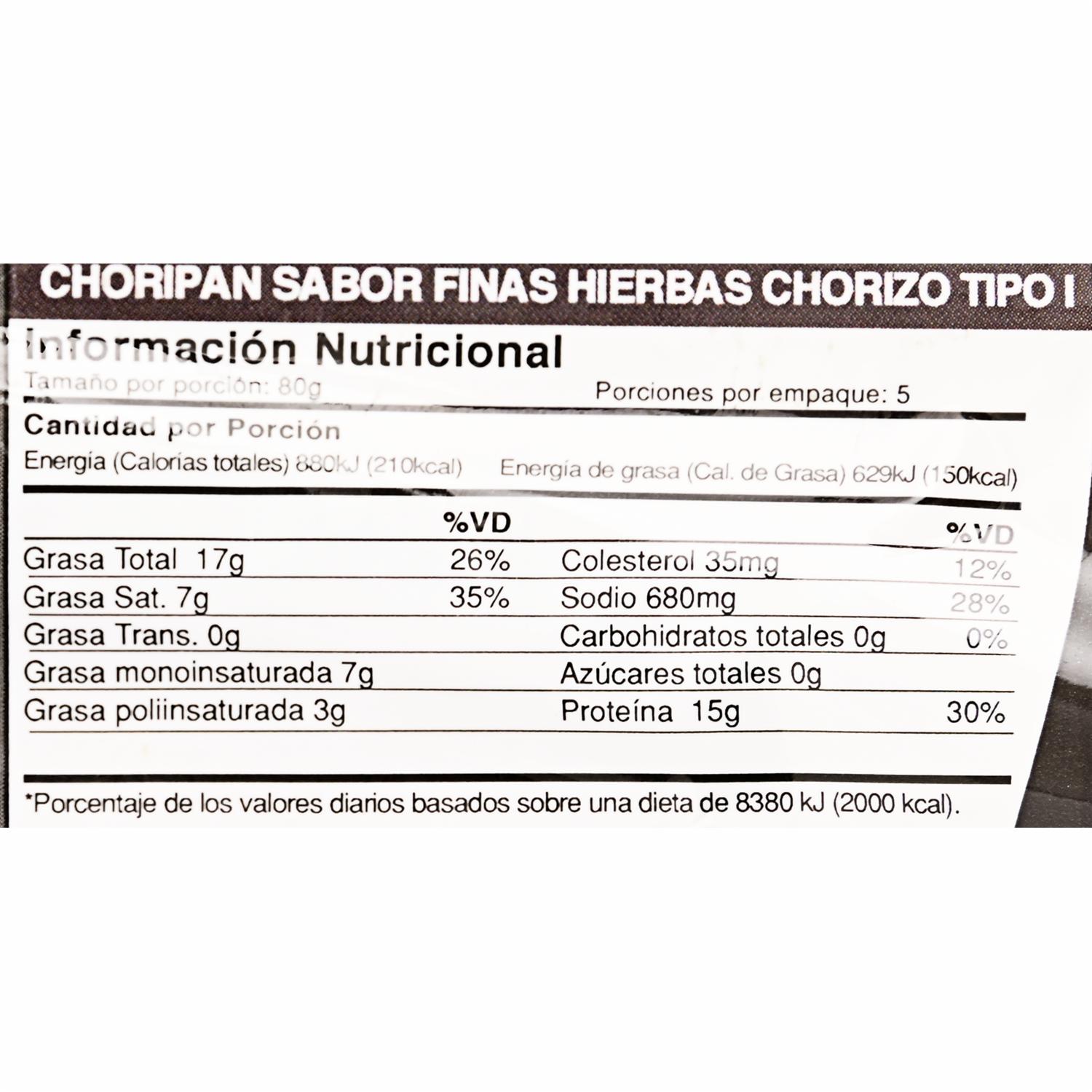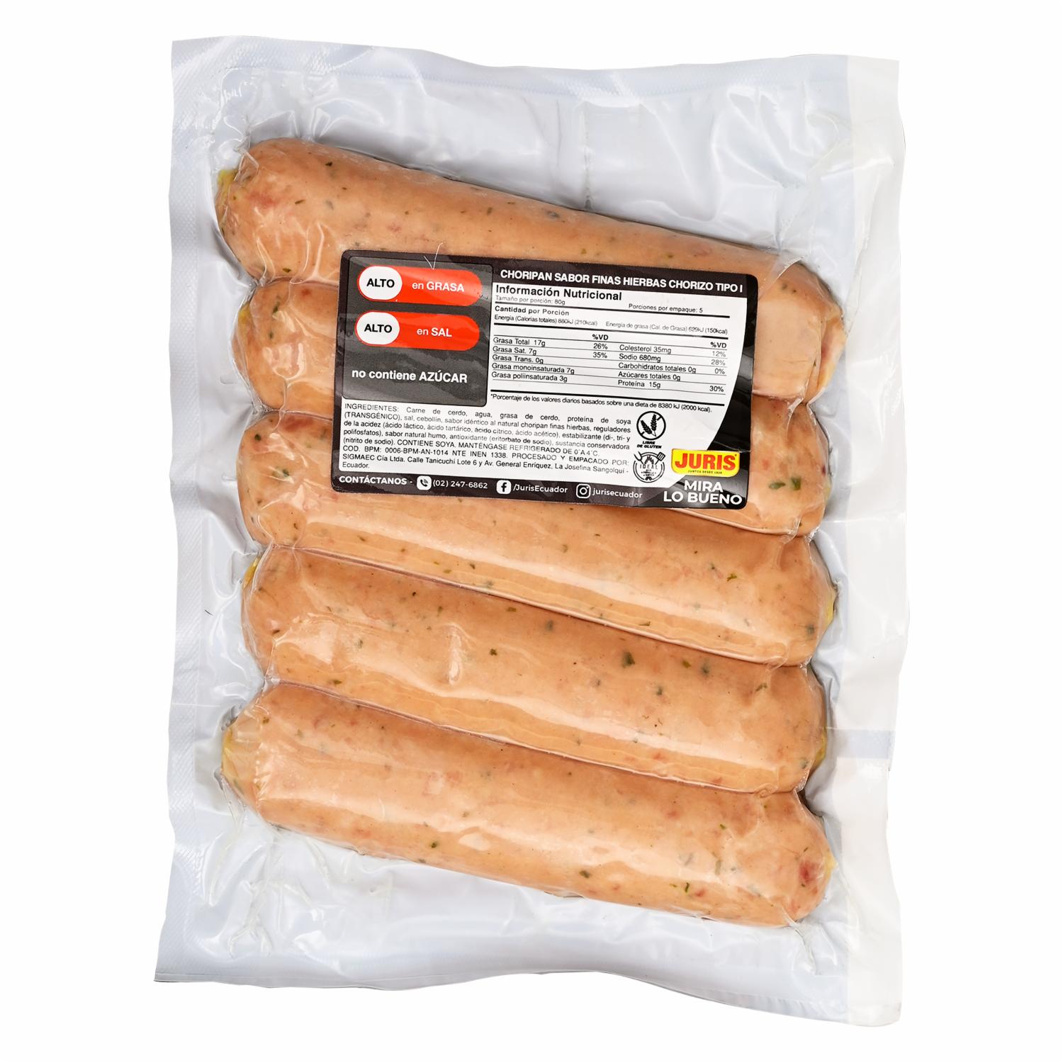 Chorizo Para Choripán Finas Hierbas Tipo I. JURIS 400 G
