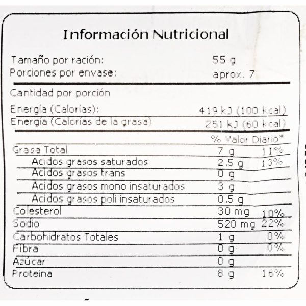Producto cárnico cocido de pasta gruesa. Para su elaboración se utiliza carne de cerdo, especias frescas y aditivos de uso permitido. Dichos ingredientes son sometidos a procesos de molido, mezclado, embutido, secado y precocción; complementando barbacoas, asados o platillos especiales que busquen sabores exquisitos