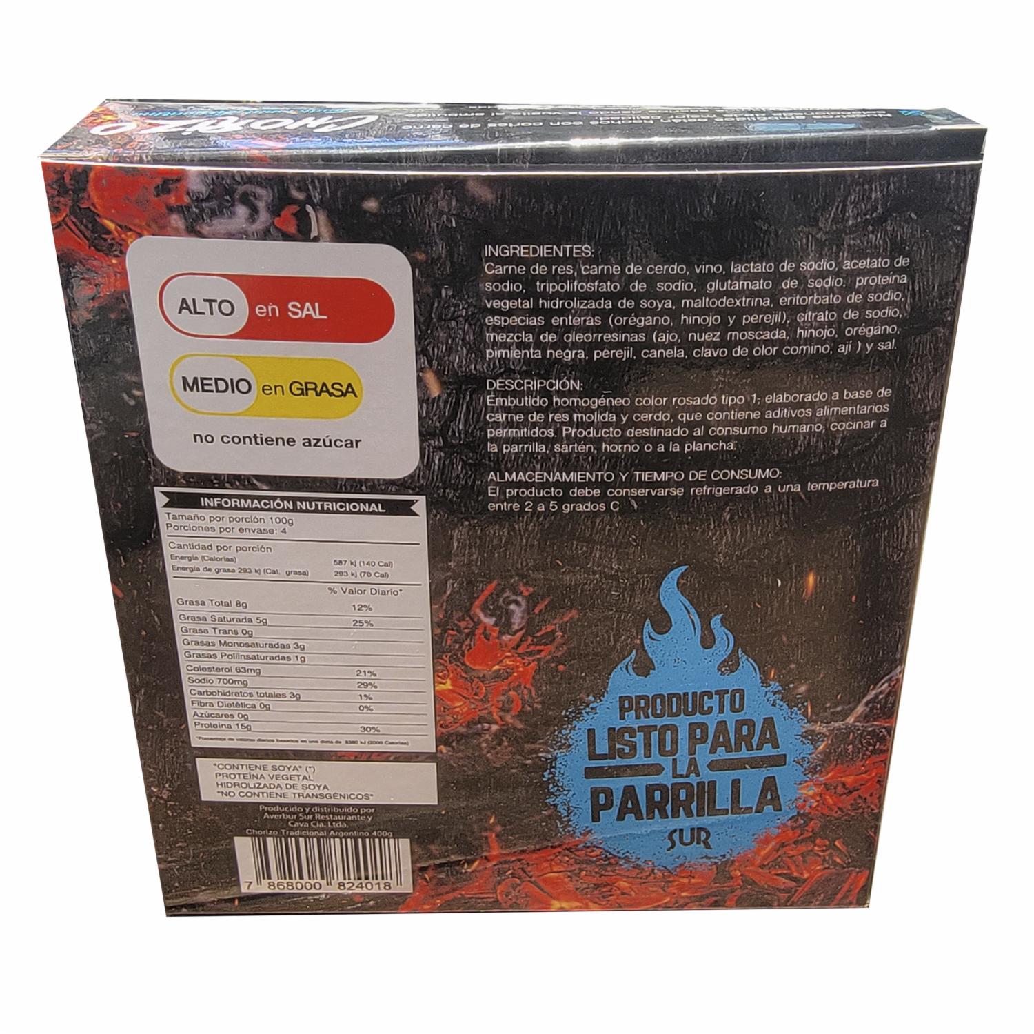 consultando preciosChorizo Tradicional Argentino SUR 400 G – SUR. Disponible en nuestros locales. Precio y stock pueden variar según la tienda.